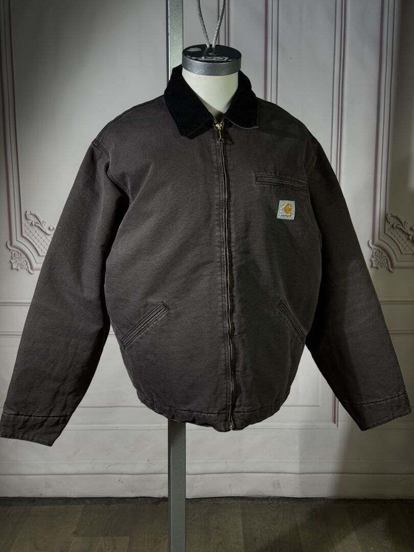 CARHARTT - Veste homme modèle "Detroit", coton anthracite, revers du col en velours côtelé noir, fermeture à glissière, deux poches en biais. Taille M Etat magasin