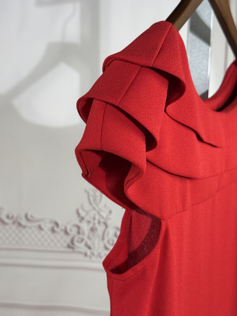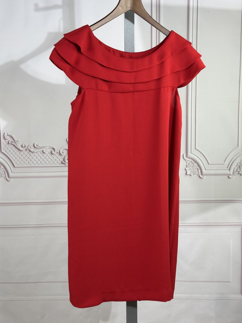 RHUM RAISINS - Robe ample rouge, encolure ronde plissée, petites manches tombant sur les épaules Taille indiquée 0 Déjà portée, très bon état