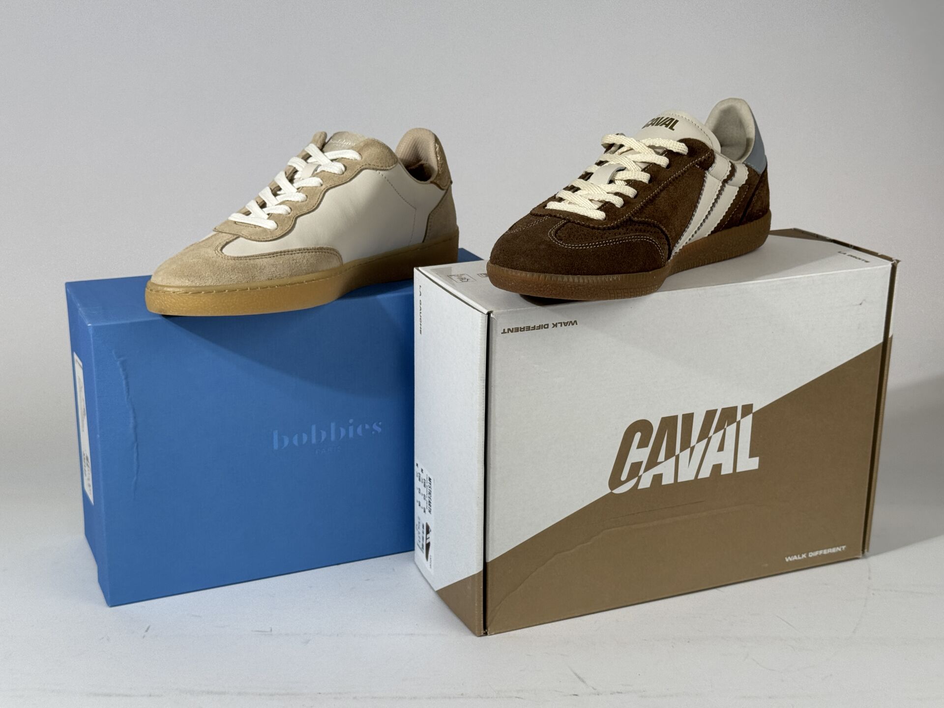 BOBBIES et CAVAL - Lot de deux paires de souliers sont une paire de sneakers modèle "Bahia" et une paire de sneakers modèle "Mystic Earth". Pointure 38 Etat magasin