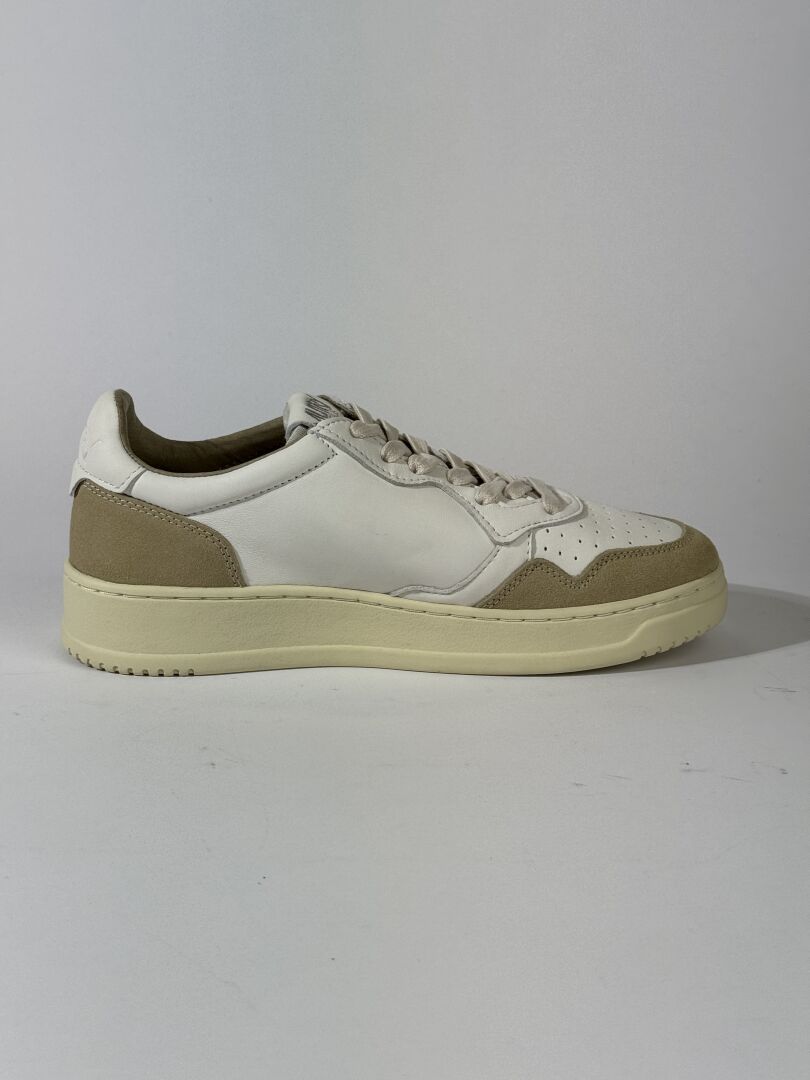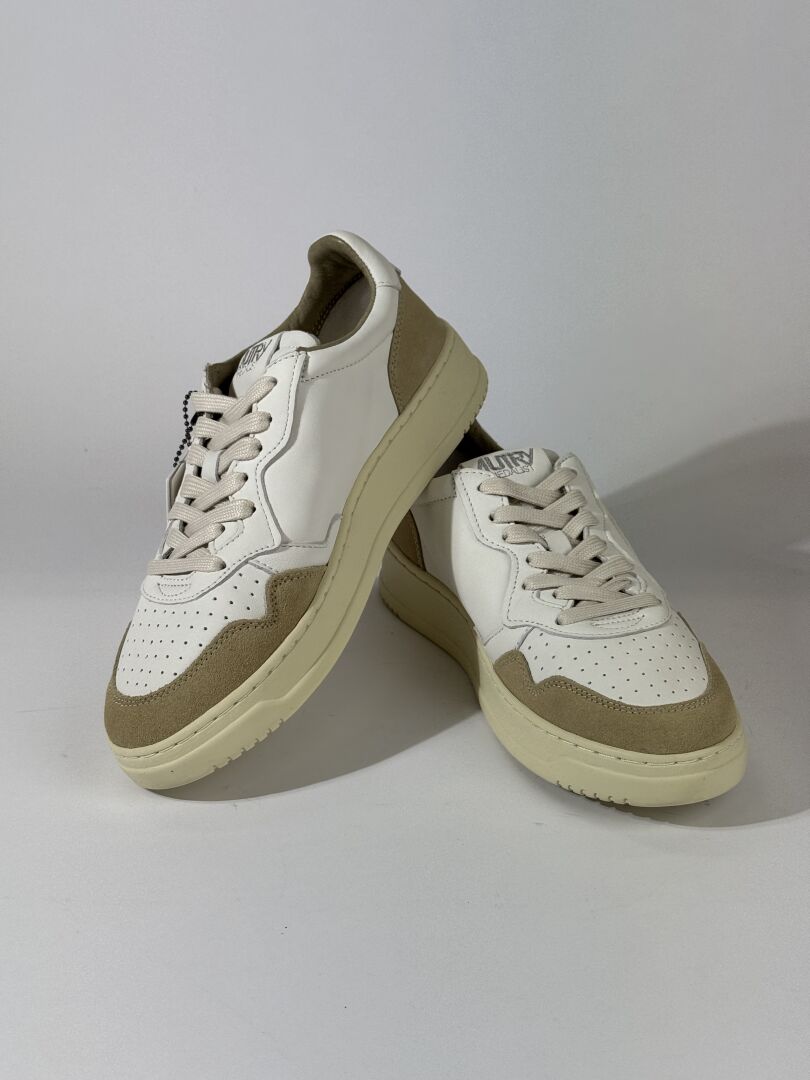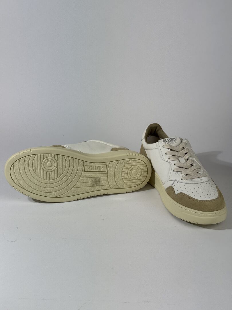 AUTRY - Paire de sneakers, cuir blanc et daim taupe. Boite. Pointure 41 Etat magasin