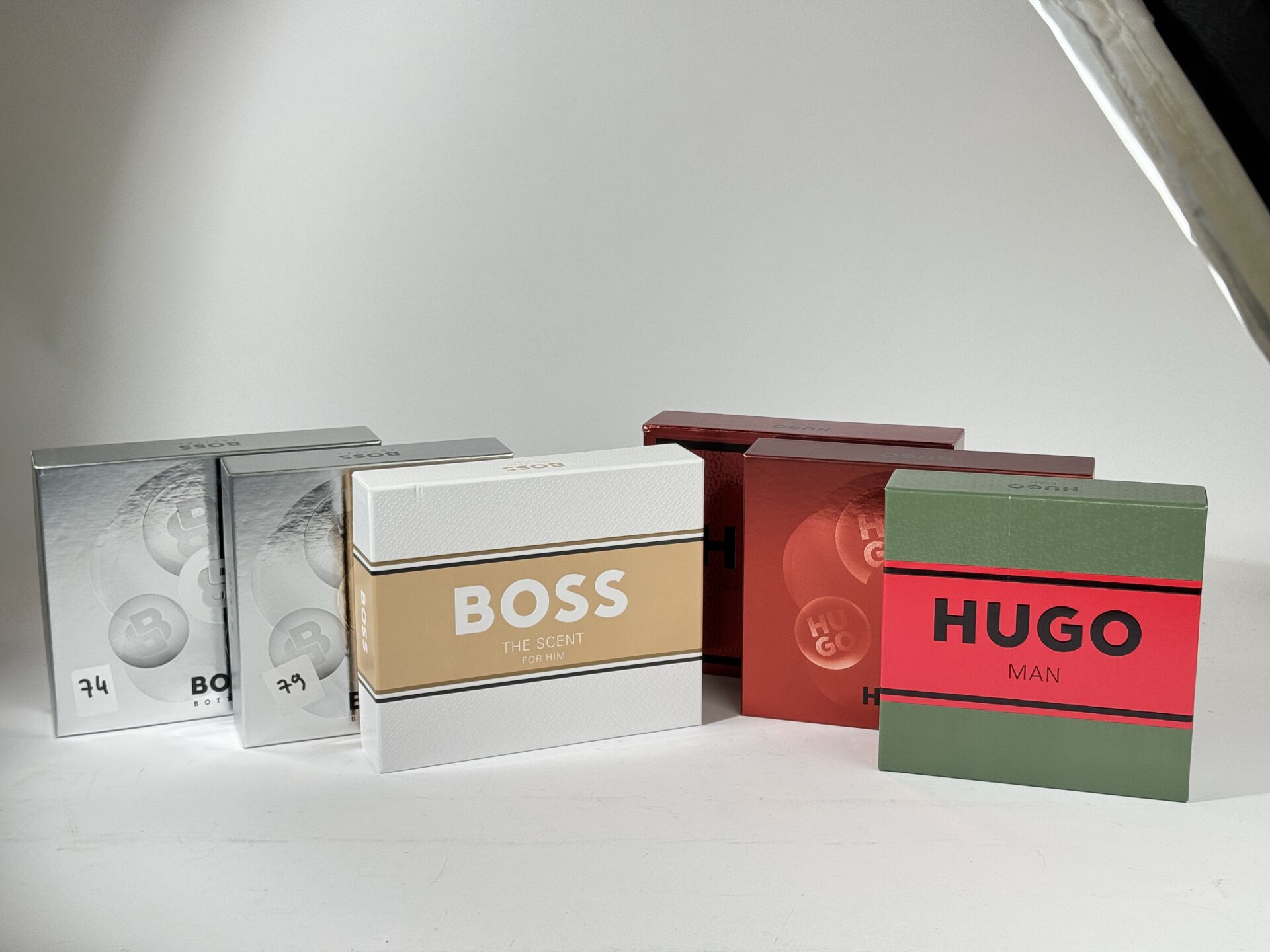 BOSS - 6 coffrets dont 3 HUGO MAN eau de toilette 2 X125ml et 1 X 75 ml et 2 BOSS BOTTLE et un BOSS THE SCENT 100 ml.