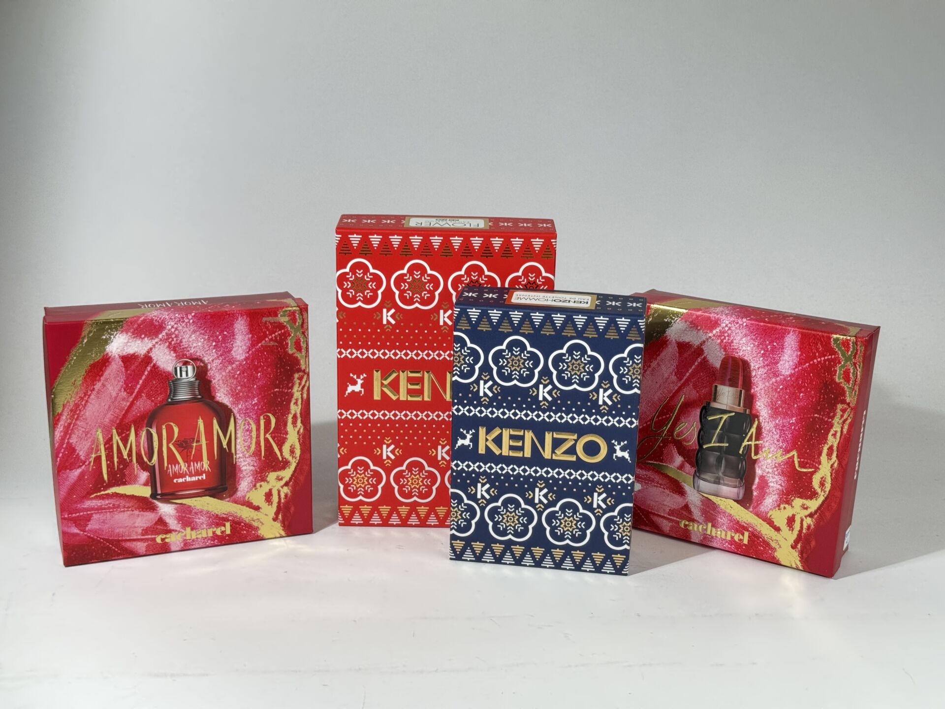 CACHAREL - KENZO - 4 coffrets dont "Amor Amor" eau de toilette 50 ml, "Yes I Am" eau de parfum 50 ml, eau de parfum "Flower", et eau de toilette Kenzo.
