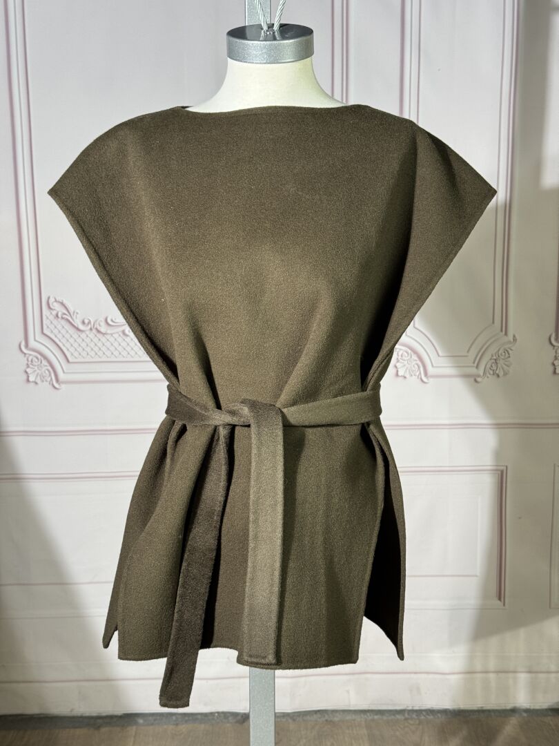 SOEUR - Pull/poncho en lainage kaki, fermeture latérale à boutons, ceinture. Taille indiquée 1 Etat magasin