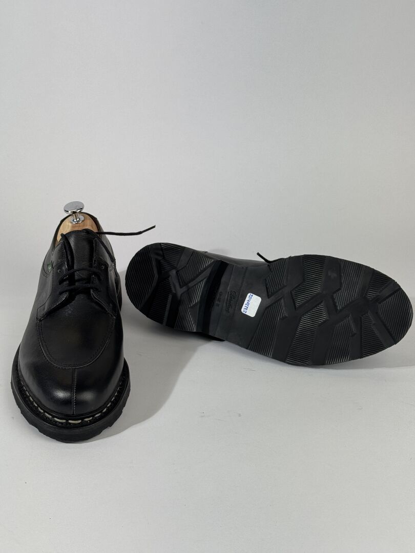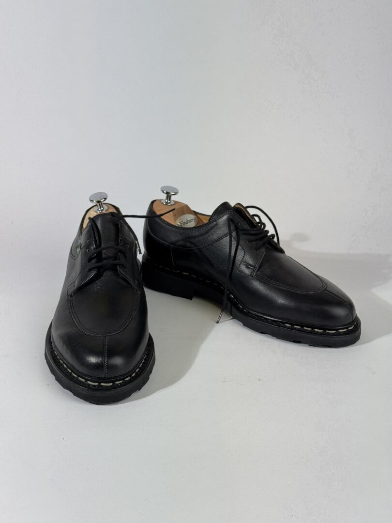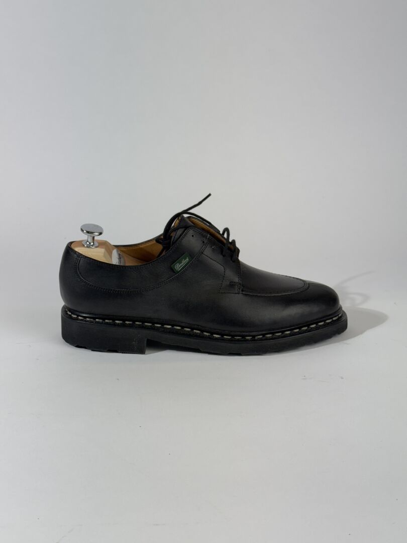 PARABOOT - Paire de souliers Homme modèle "Griff II" en cuir noir, lacets. Sans boite. Pointure indiquée 7,5 (soit 41,5 français) Etat magasin