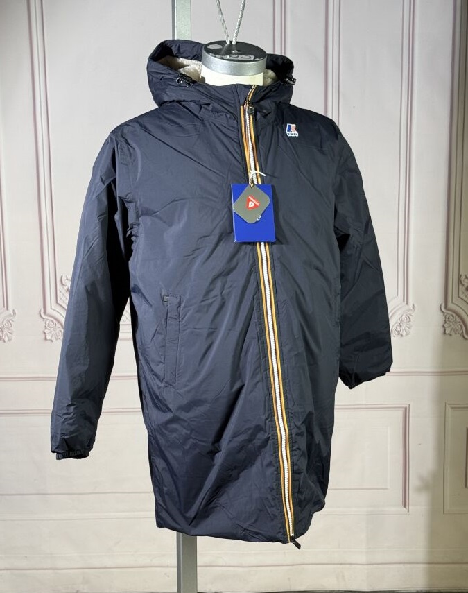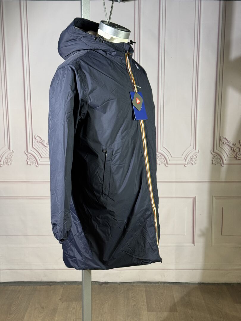 K-WAY - Imperméable modèle "La Vrai 4,0 Eiffel East Orsetto" marine, femeture à glissière, deux poches zippées, manches longues, capuche. Taille indiquée XS Etat magasin