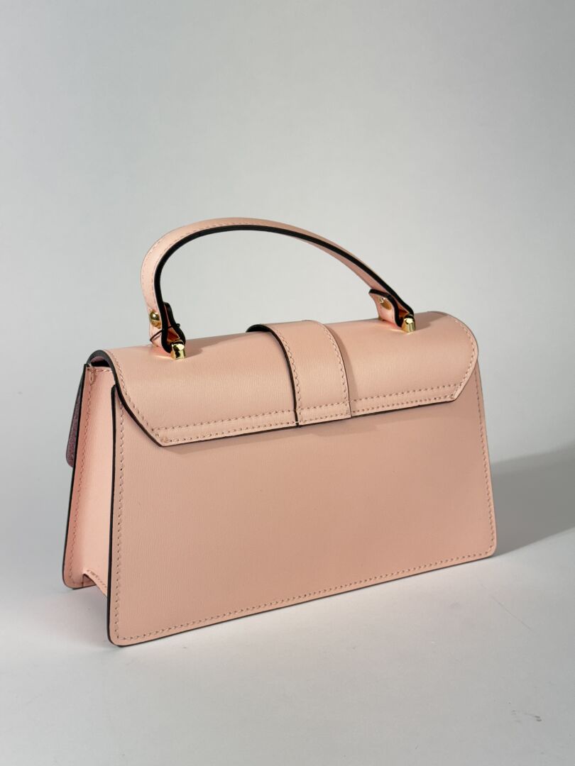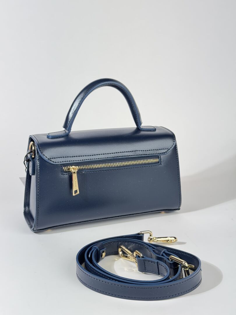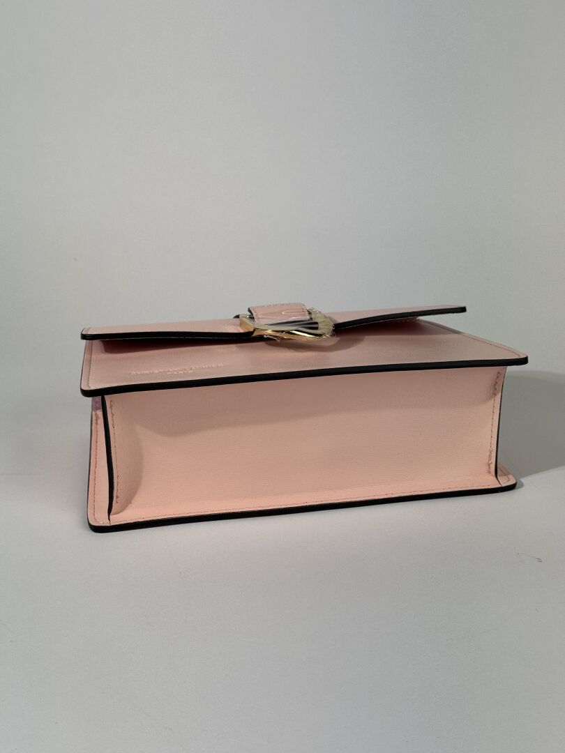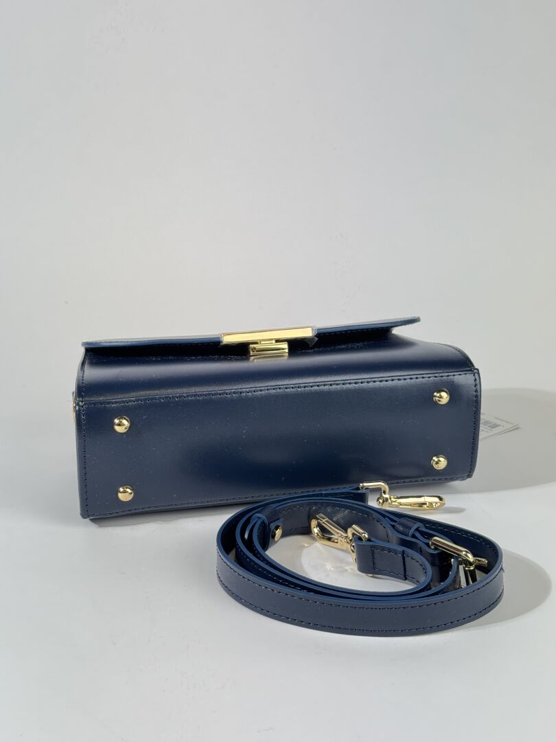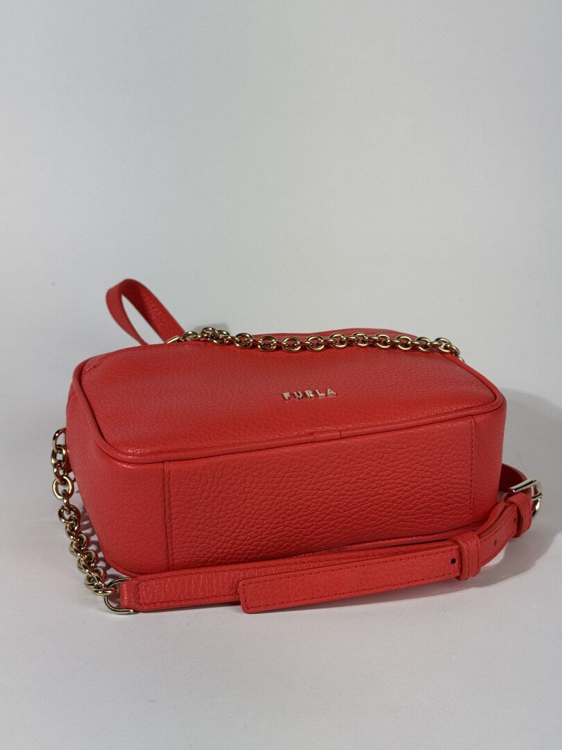 Lot comprenant trois sacs à main : - CHRISTIAN LAURIER - Petit sac à rabat en cuir rose pale, poignée et anse bandoulière à la couleur, fermture aimantée. Haut. : 13 cm - Long. : 25 cm - FURLA - Petit sac caméra en cuir grainé coquelicot, fermeture à glissière, anse bandoulière cuir et chaine métal doré. Haut. : 15 cm - Long. : 20 cm - LANCASTER - Petit sac à rabat en cuir marine, poignée et anse bandoulière à la couleur. Haut. : 14 cm - Long. : 25,5 cm Etat magasin