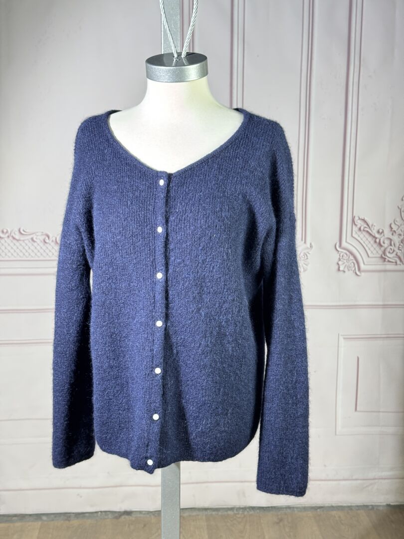LA MAILLE SEZANE - Cardigan, maille mohair et alpaga marine, manches longues, simple boutonnage. Taille S Déjà porté, bon état