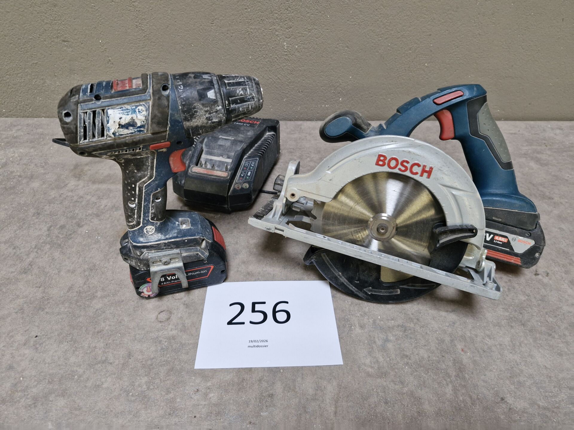 1 scie circulaire autonome BOSCH GKS 18V-Li diam 165 mm 1 batterie 1 chargeur 1 visseuse autonome BOSCH GSR 18V-55 1 batterie