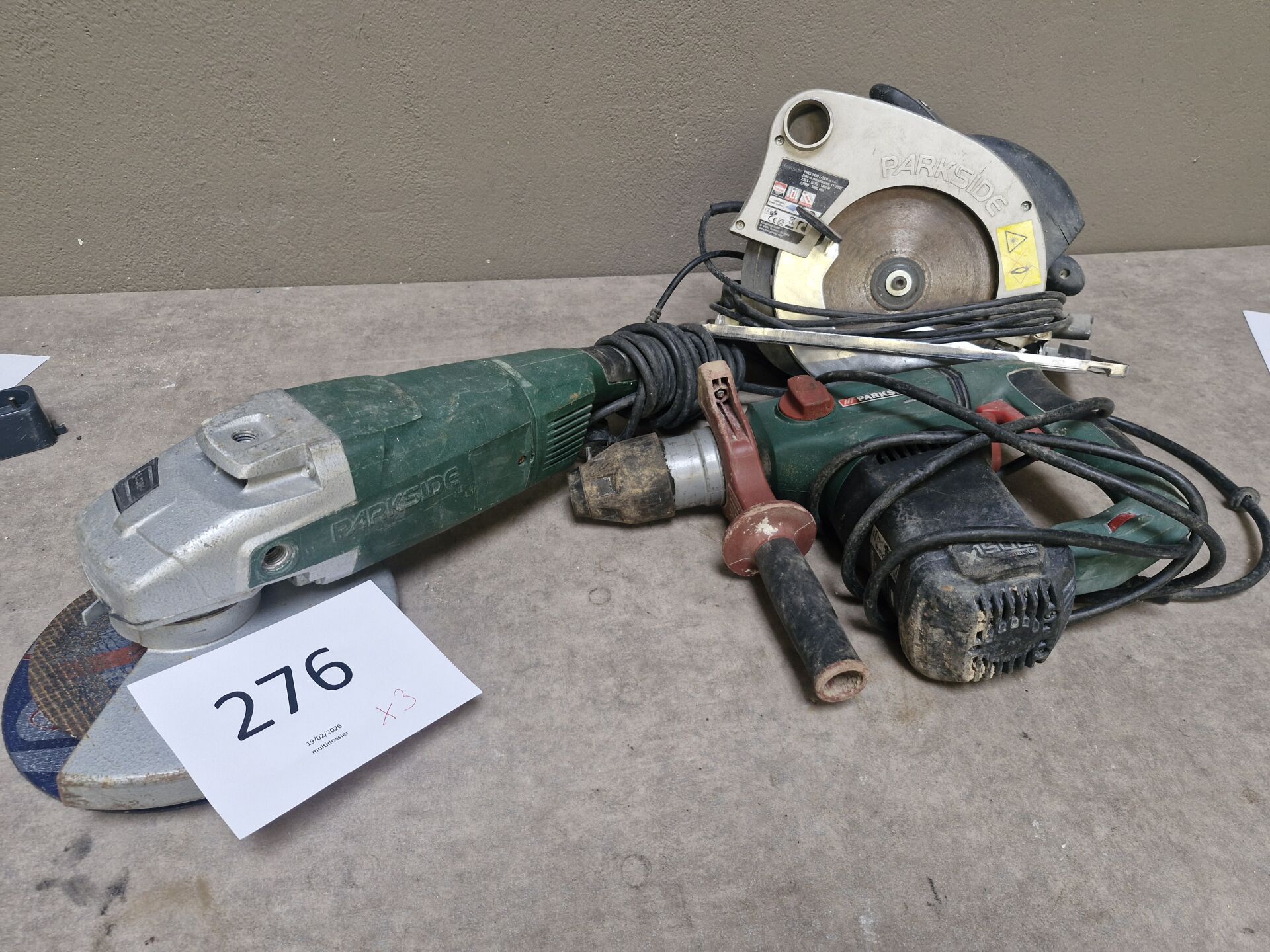 1 meuleuse d'angle filaire PARKSIDE sans plaque apparente, diam. 230mm 1 perforateur / burineur filaire PARKSIDE PBH 1500 B2 1 scie circulaire PARKSIDE PHKS 1450, diam. 210mm