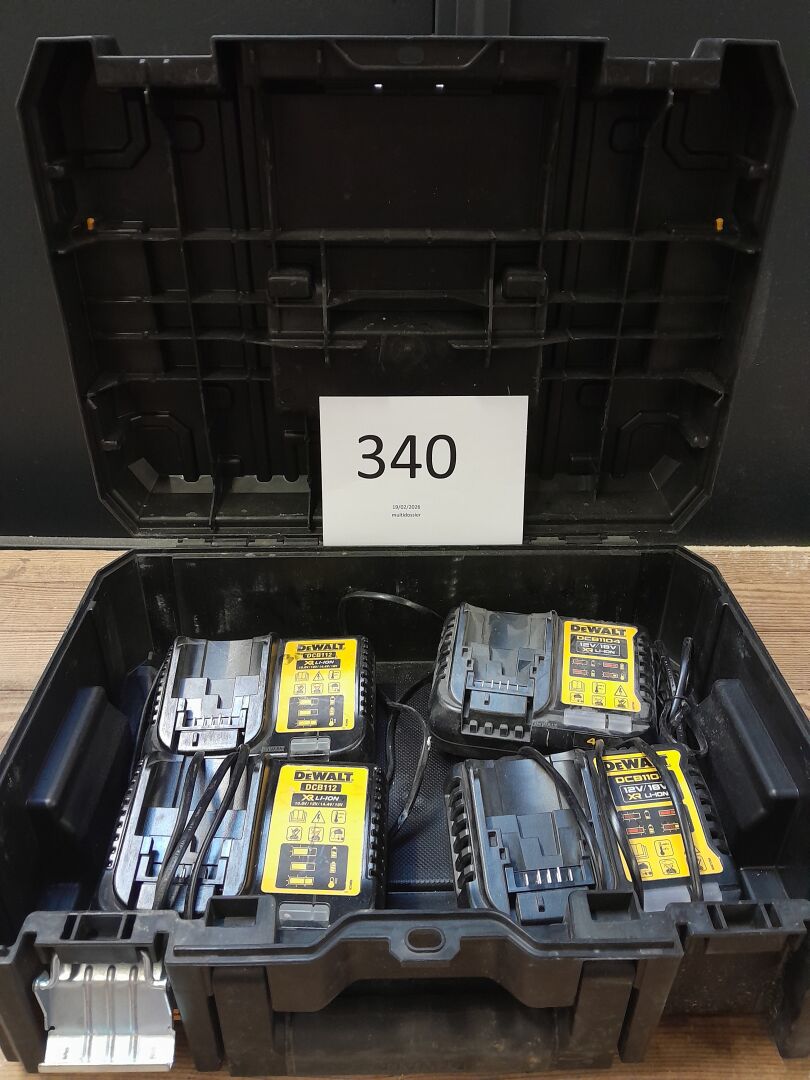 1 lot comprenant de 2 chargeurs DEWALT modèle DCB112 2 chargeurs DCB1104 dans un coffret ( sans sa structure intérieur )