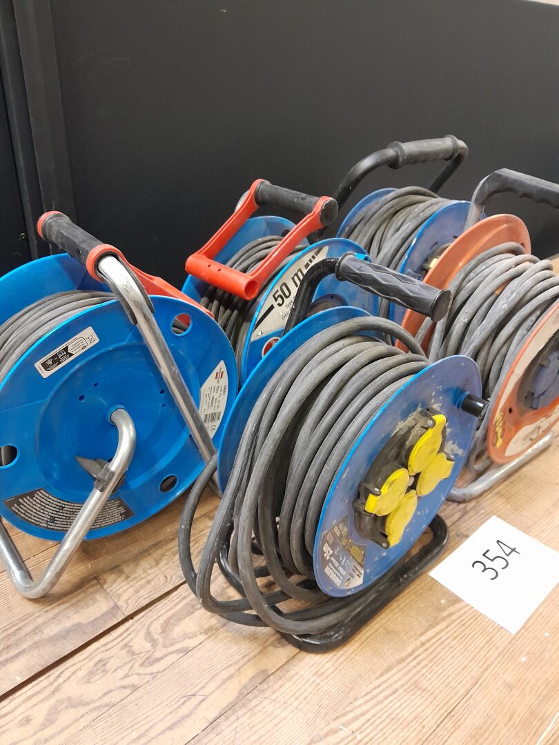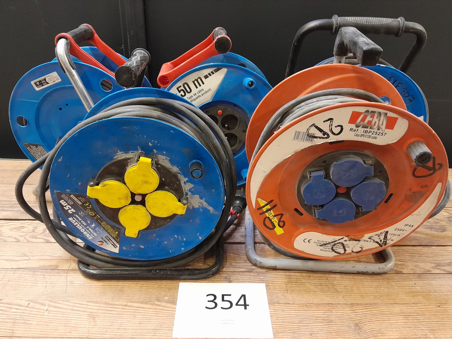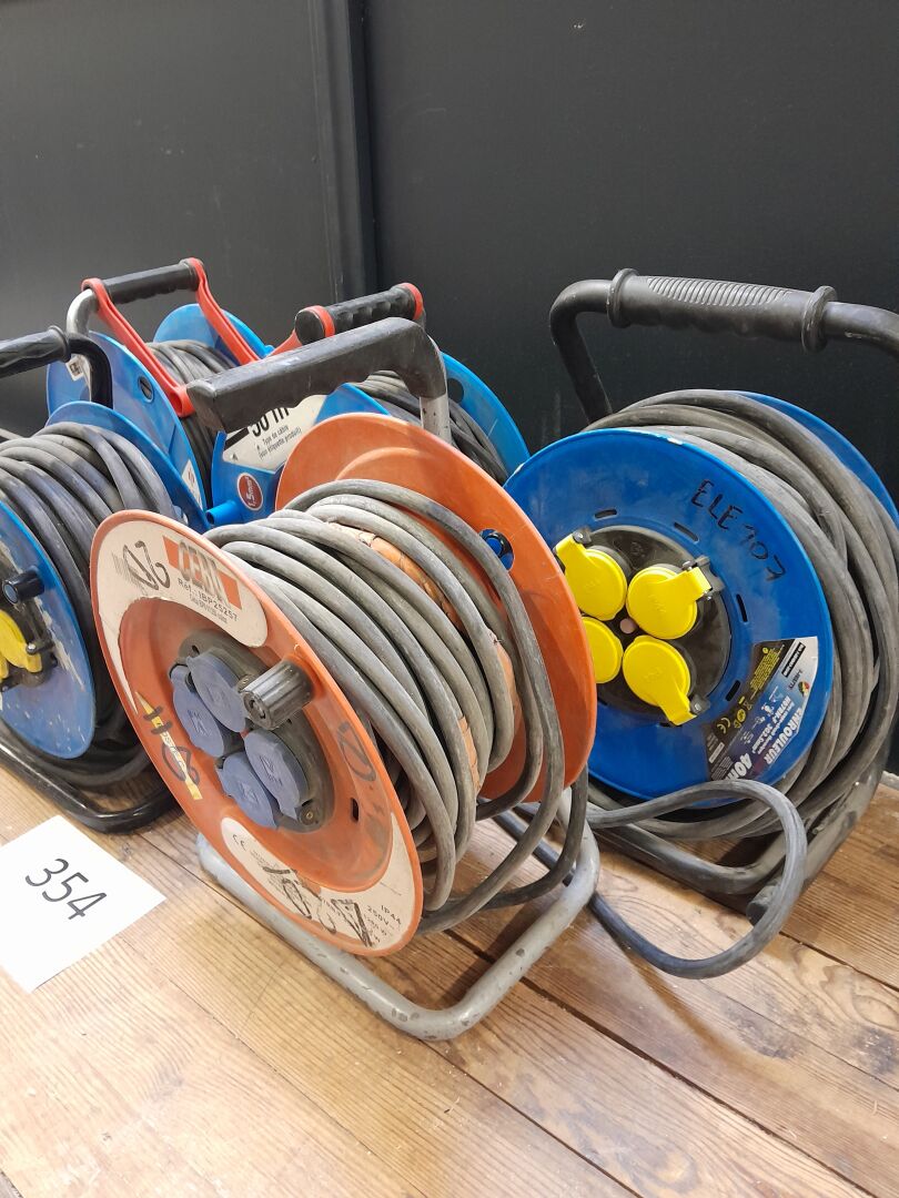 1 lot de 5 enrouleurs électriques comprenant 1 de 25 mètres , 1 de 40 mètres et 3 de 50 mètres de marque CEBA / BRENNENSTUHL / WATTS