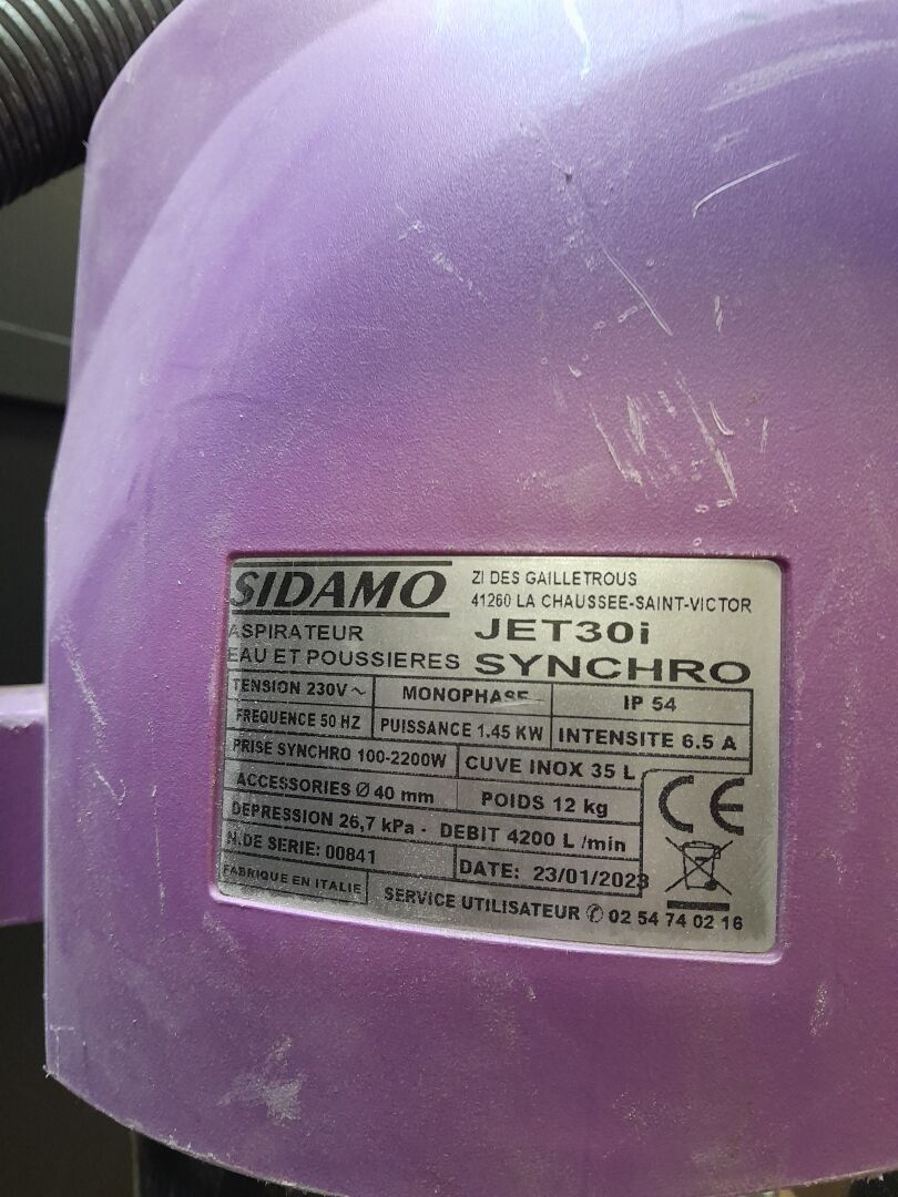 1 aspirateur eau et poussières cuve de inox de 35 litres SIDAMO modèle JET 30 I SYNCHRO avec tube et tuyau NS 00.841