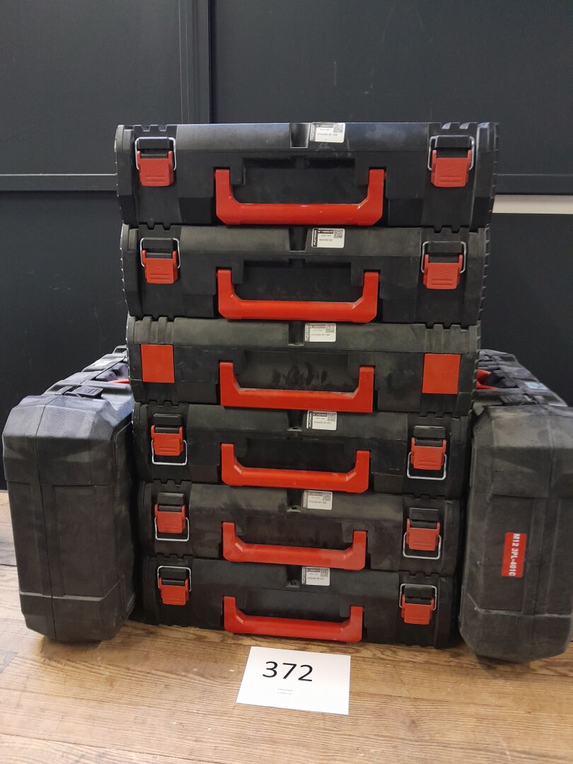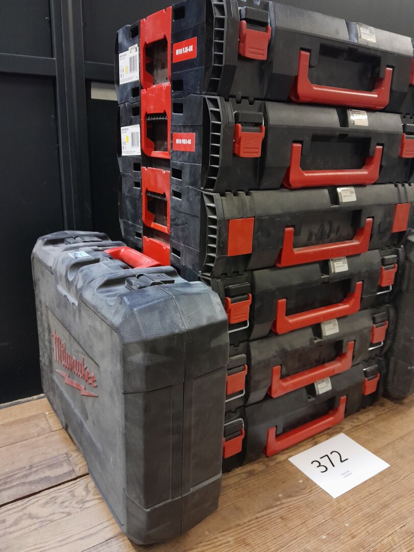 1 lot de 6 coffrets VIDES de la marque MILWAUKEE plusieurs tailles ; bon état général on y ajoute 2 coffrets VIDES pour laser M12 3PL