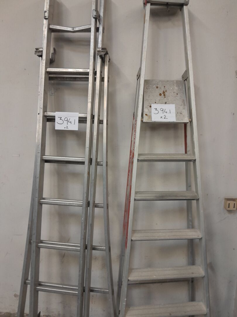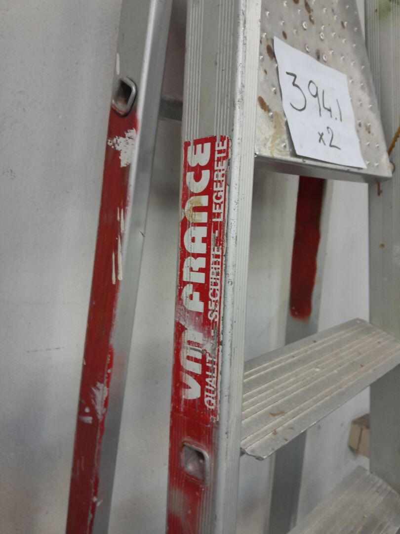 1 lot comprenant 1 escabeau 7 marches VMFRANCE 1 échelle 3x7 marches de marque INCONNUE , accidentée