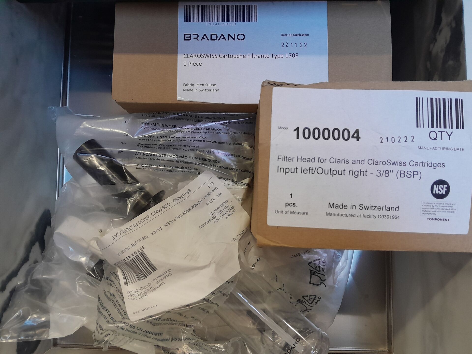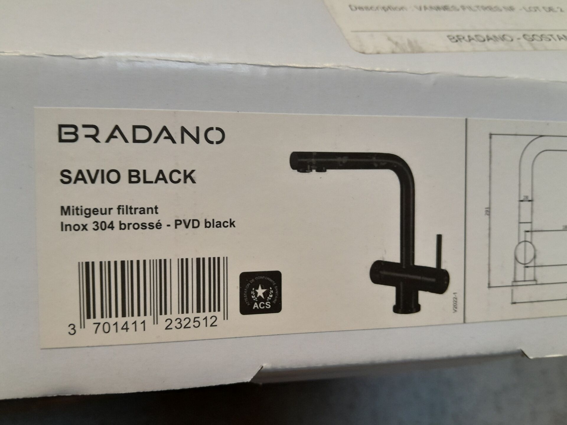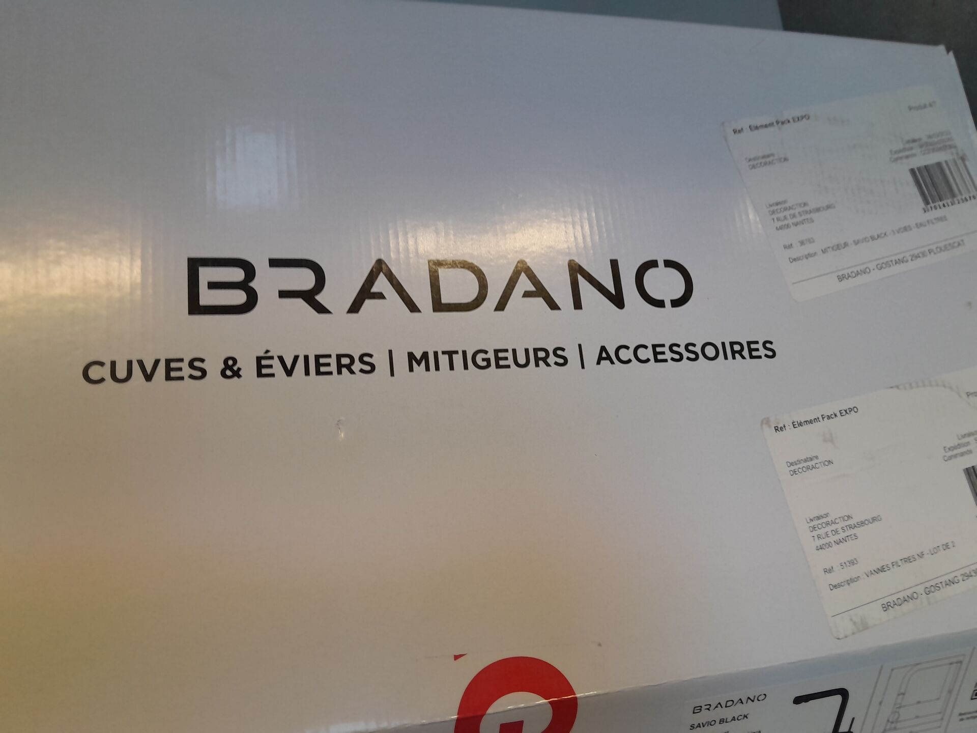 1 ensemble évier mitigeur et accessoires BRADANO dimension : L 50,5 cm H 17 cm P 46 cm issu d'un modèle d'exposition