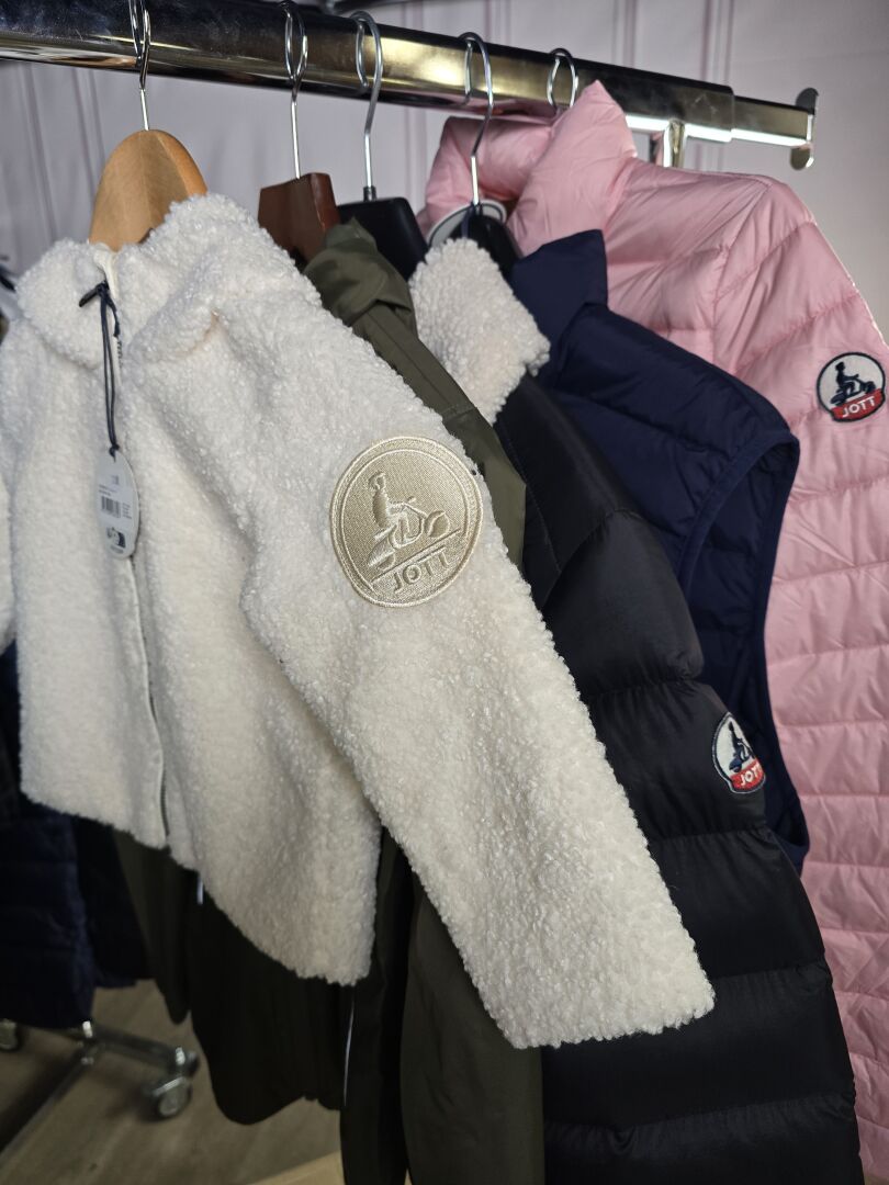 JOTT - 5 doudounes du 18 mois au 3 XL divers modèles et coloris. On y joint un sac de voyage et Accessoires (bonnet, écharpes, maillots de bain) La grande majorité avec anti vol