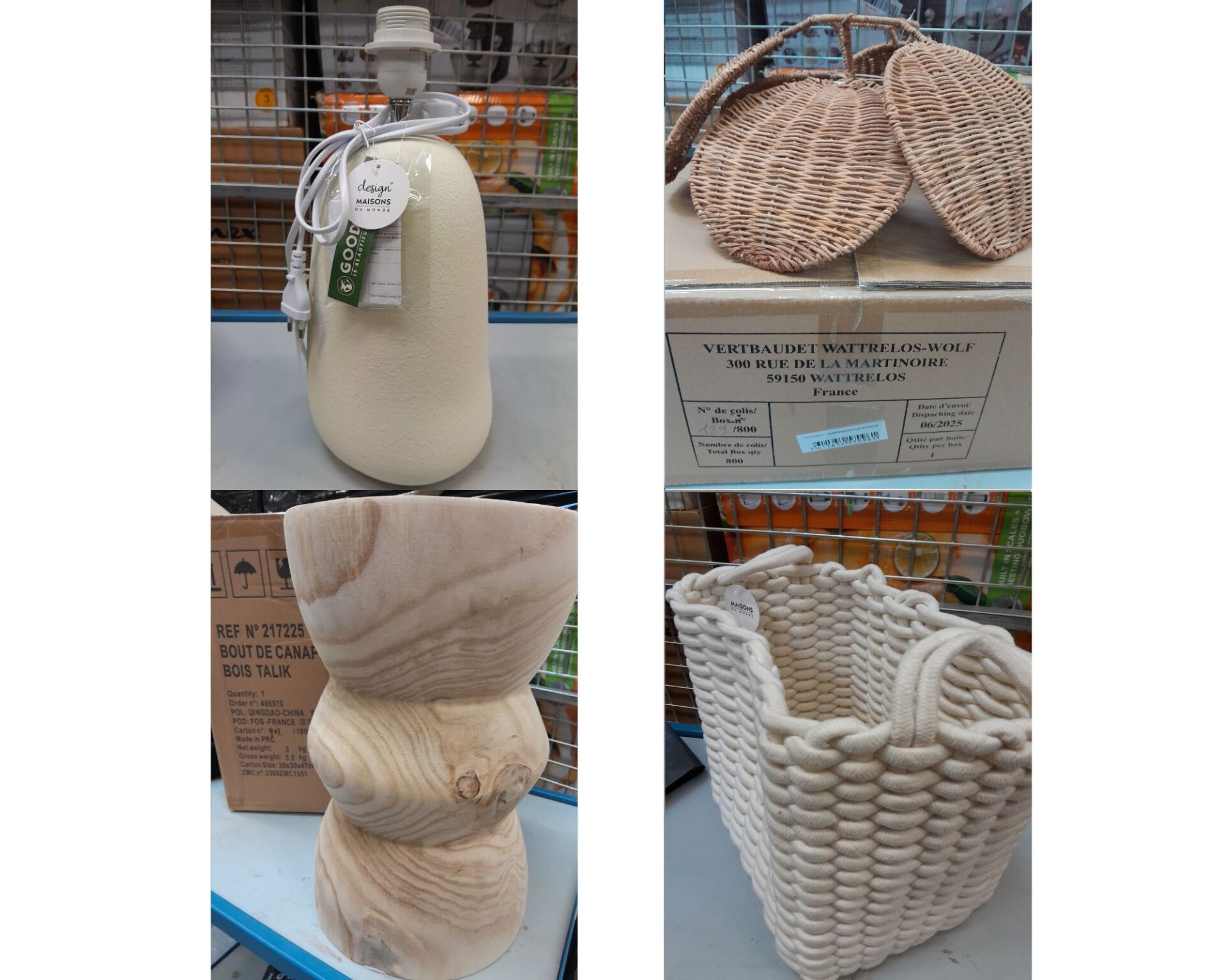 FORT ENSEMBLE DE PETITS MOBILIERS ET DECORATIONS (environ 1m3) DONT CHAISE , MEUBLE DE RANGEMENT , ABAT JOUR , BOUT DE CANAPE , LAMPE , LANTERNE , PANIER / VERTBAUDET , HOME SWEET HOME , LOBERON , IKEA , ALL OVER THE WORLD , DELINIA , MAISONS DU MONDE (expédition sur devis) Lot issu de colis non réclamés : état de fonctionnement non garanti.