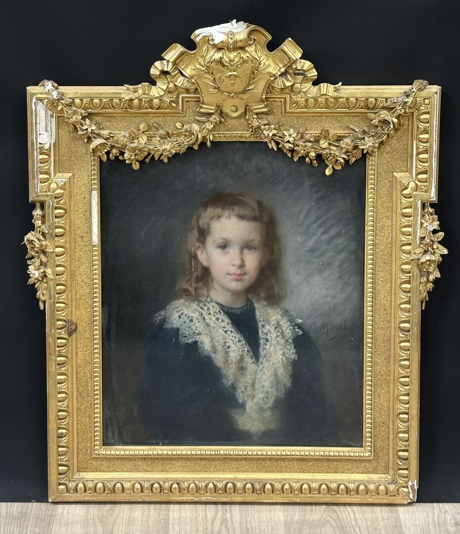 Ecole française du XIXe siècle. Portrait d'enfant. Pastel signé à droite. Dim. à vue : Haut. : 54 cm - Larg. : 46 cm