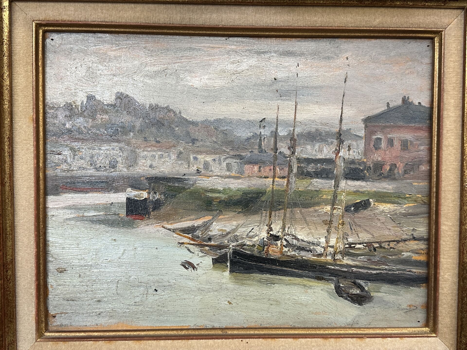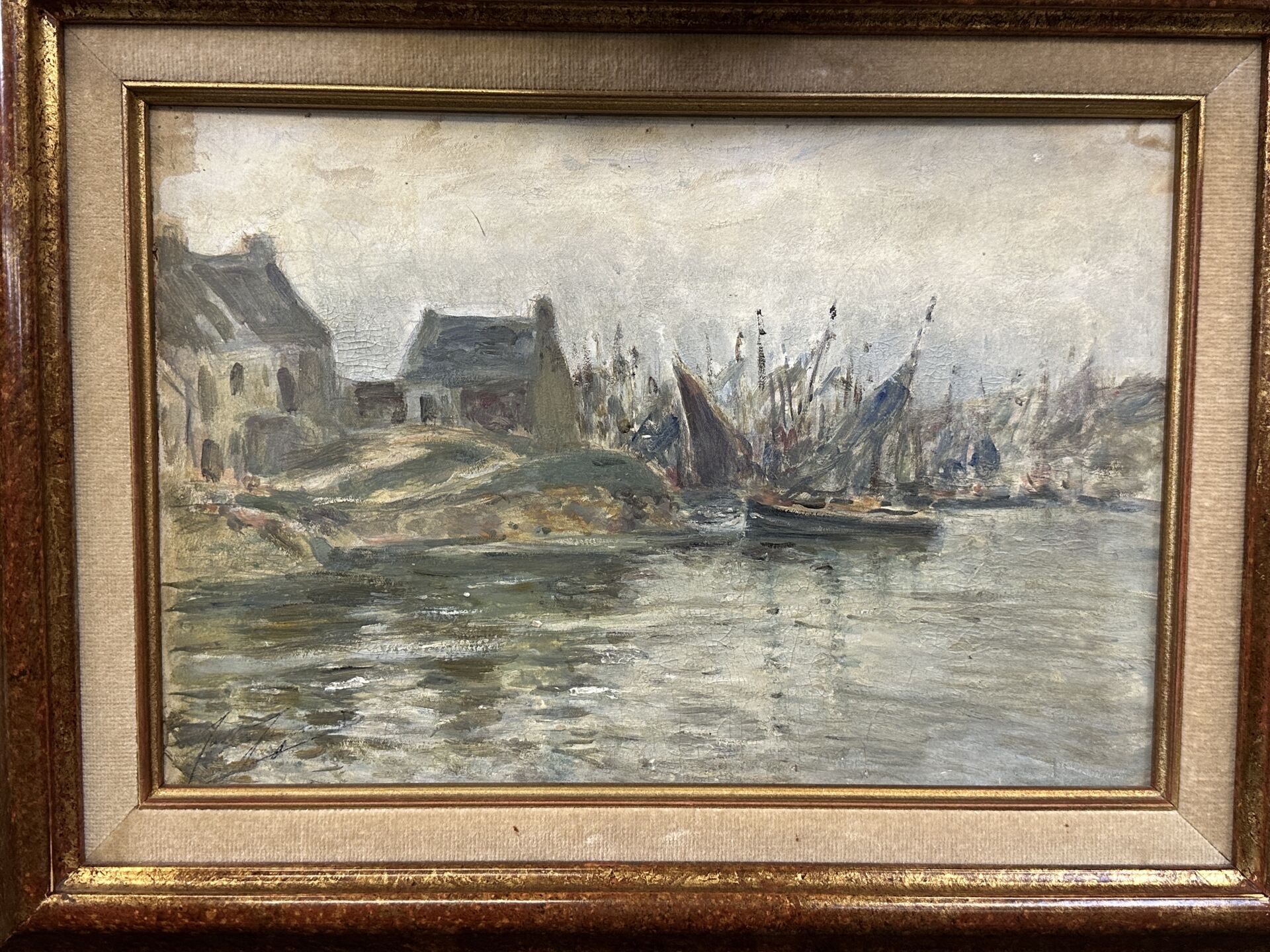 Alexandre-Gaston GUIGNARD (1848-1922). Ports bretons. Deux huiles sur panneau, traces de signature en bas à gauche pour l'un, en bas à droite pour l'autre. Haut. : 24 cm - Larg : 35 cm Haut. : 26,5 cm - Larg. : 34,5 cm