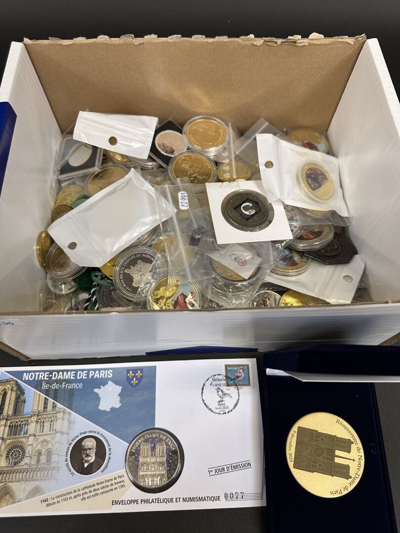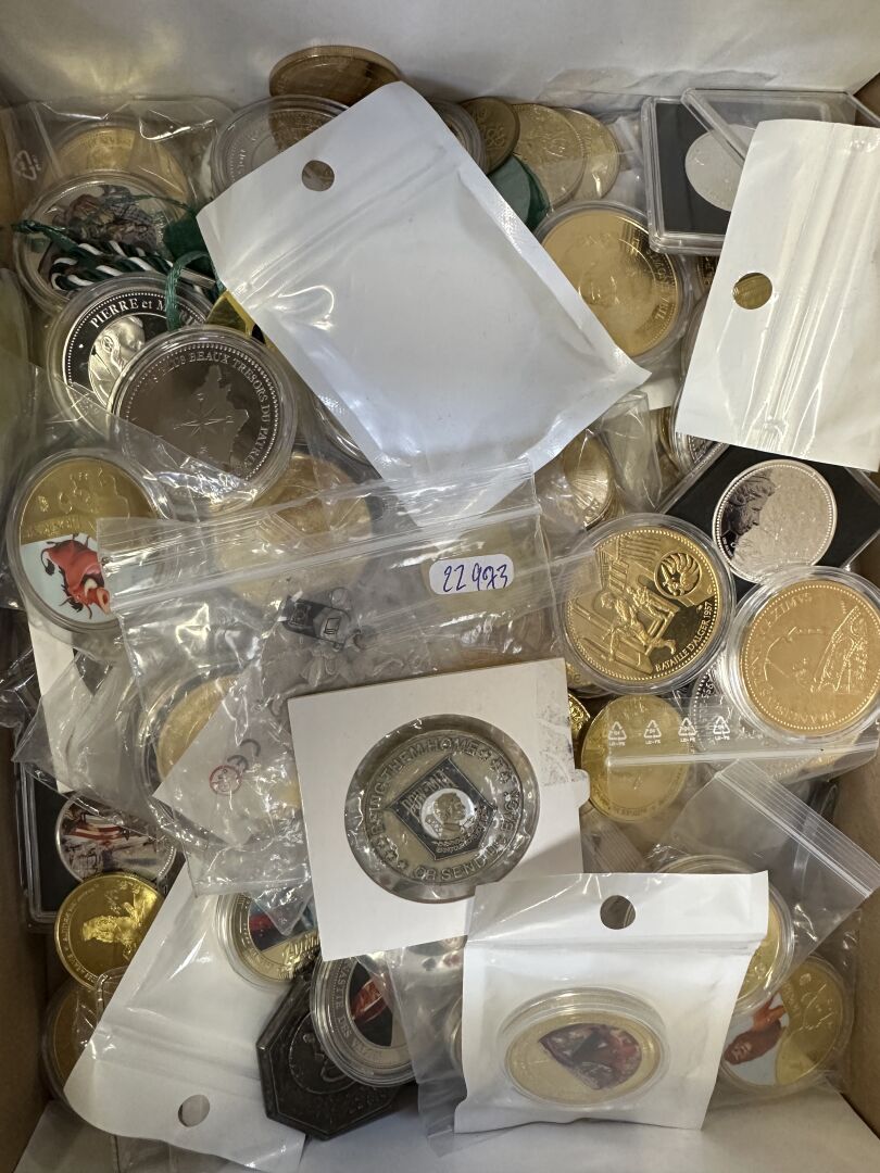 Ensemble de médailles diverses (dont colorisées). Tailles et thèmes divers : Histoire, Monarchie, Religion, Super-Héros, etc. Environ 180. Expertise réalisée par le Cabinet SUFFREN NUMISMATIQUE.