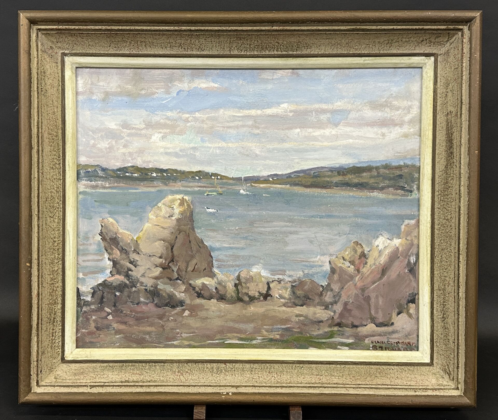 Charles Pierre BERNARD (1882-1961). "Bretagne, embouchure de l'Elorn, finistère Nord". Huile sur isorel signée en bas à droite, titrée au dos. Haut. : 38 cm Larg. : 46 cm