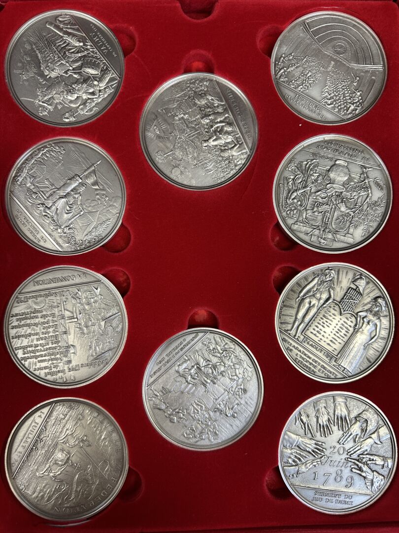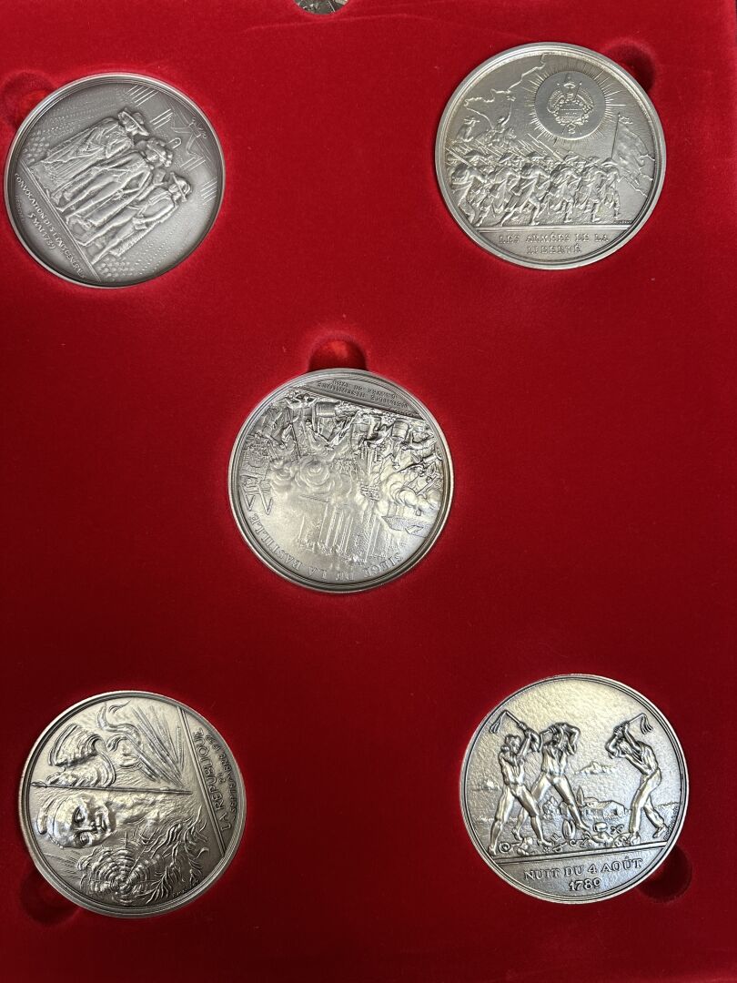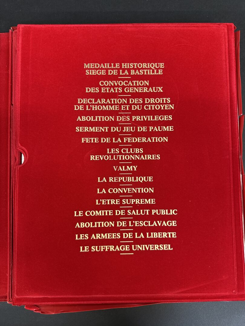 Coffret-Livre de la Monnaie de Paris "Les grands évements de la Révolution française" 1989 comprenant 15 grandes médailles en bronze argenté pour commémorer le bicentenaire de la Révolution française. Expertise réalisée par le Cabinet SUFFREN NUMISMATIQUE.