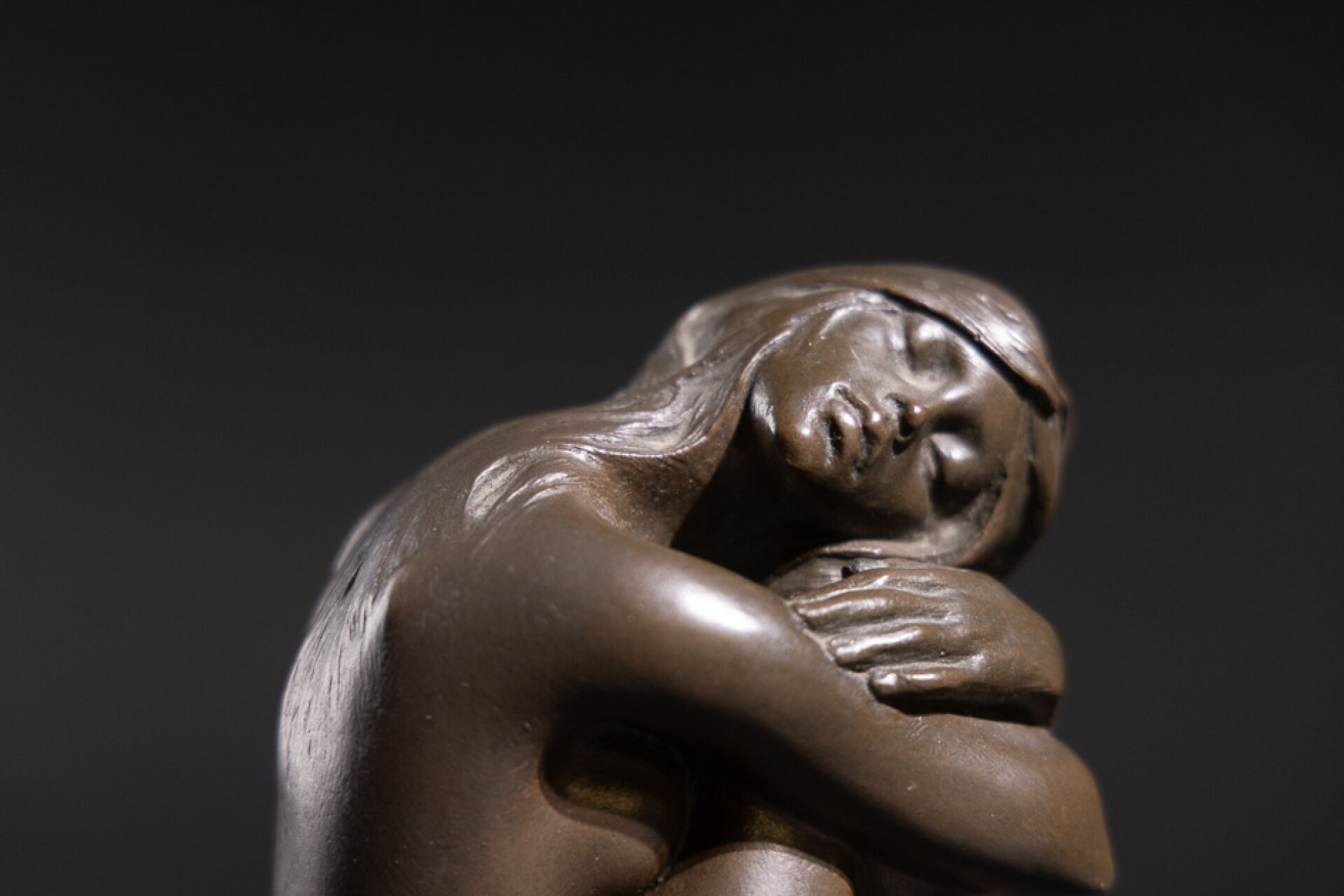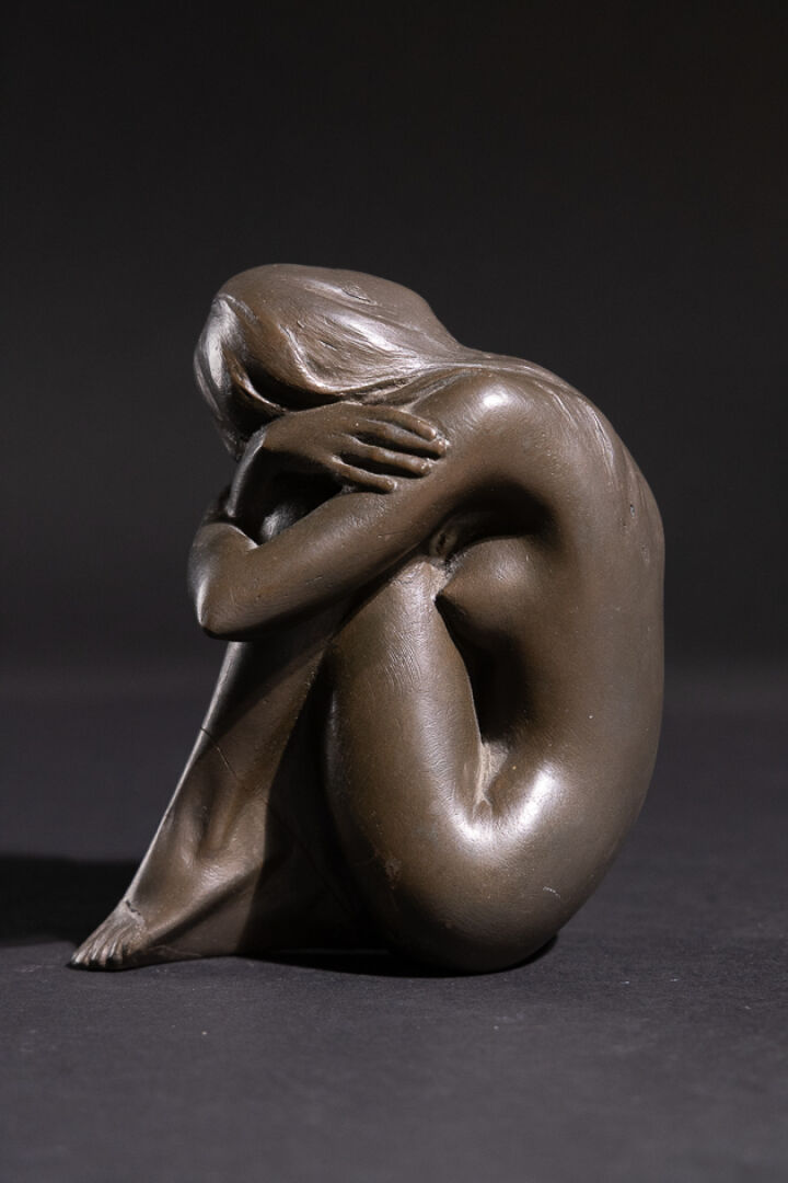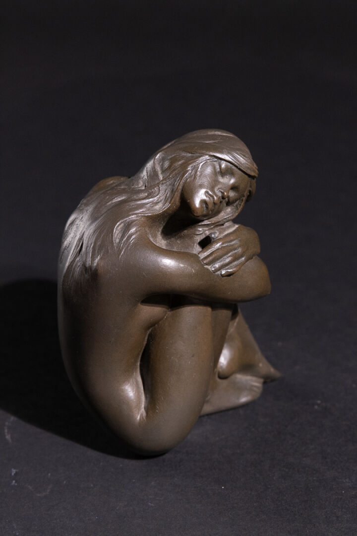 Jacques LE NANTEC ( né en 1940). Nu féminin recroquevillé. Sujet en résine signé et numéroté 162/1000, daté 85 (cassé-recollé). Haut. : 15 cm