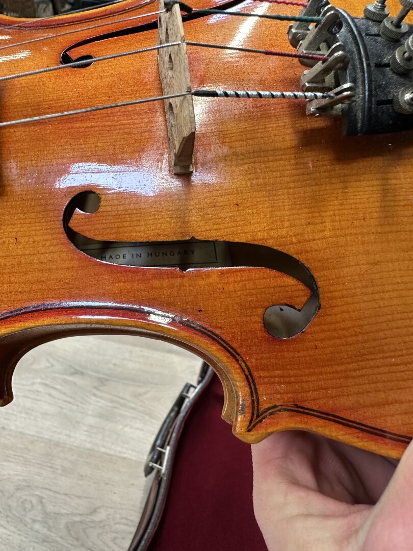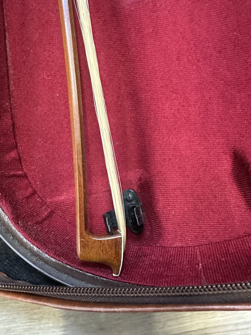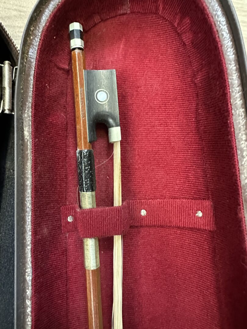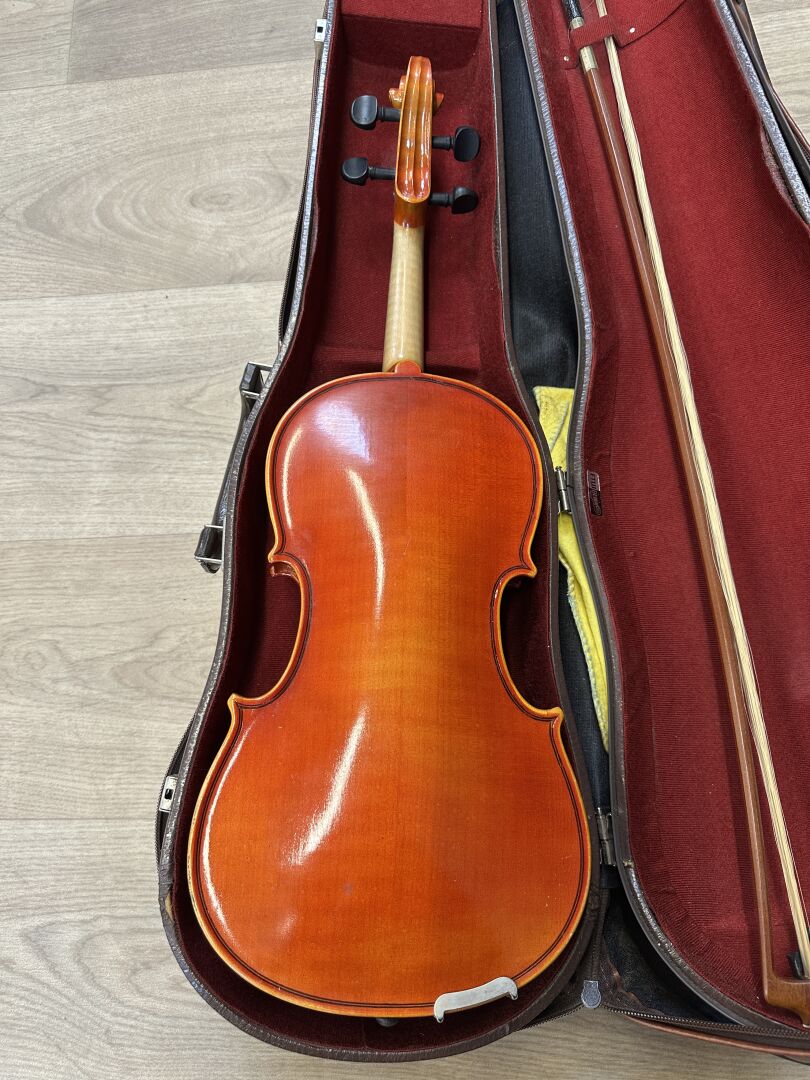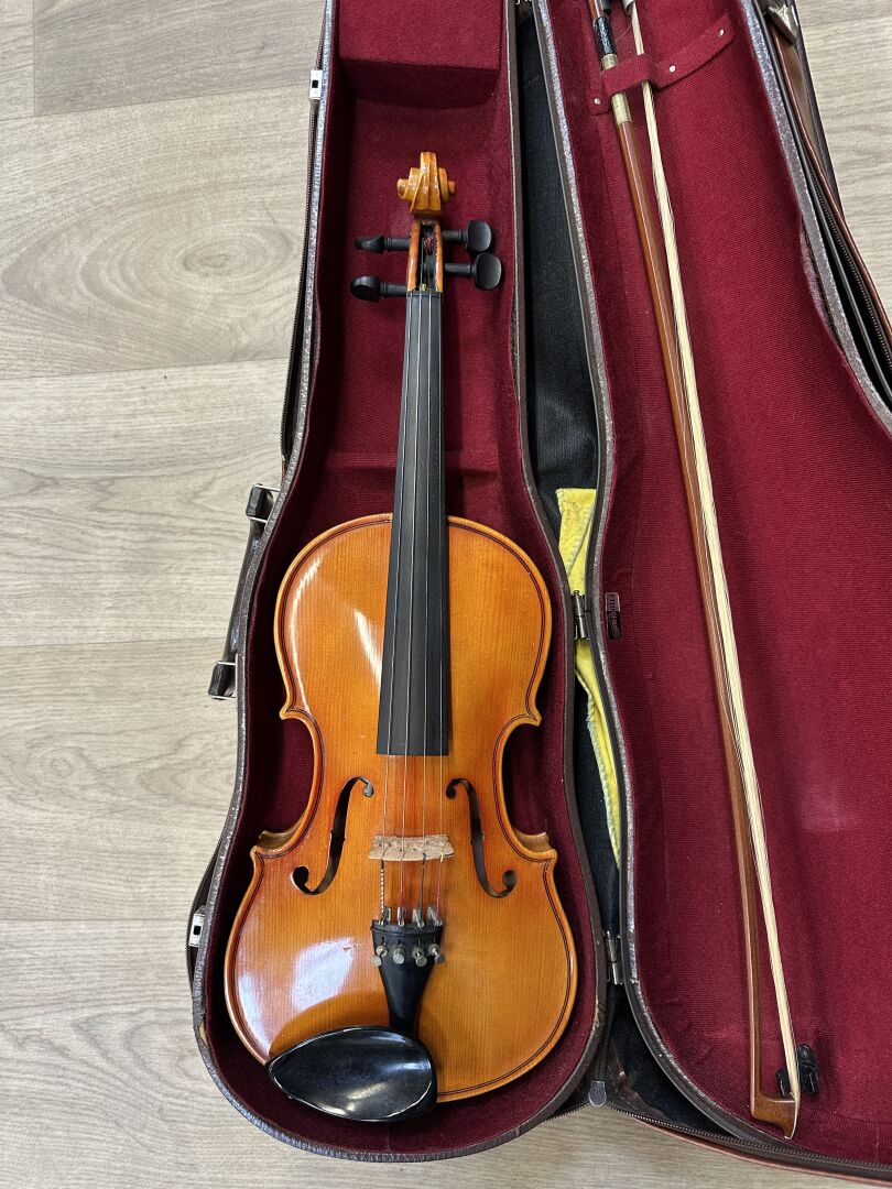 Violon d'étude "Made in Hungary" avec un archet signé OTTO JOS KLIER. Dans un étui et une sur-housse en cuir brun (l'ensemble en état d'usage). Long. violon : 59 cm Long. archet :