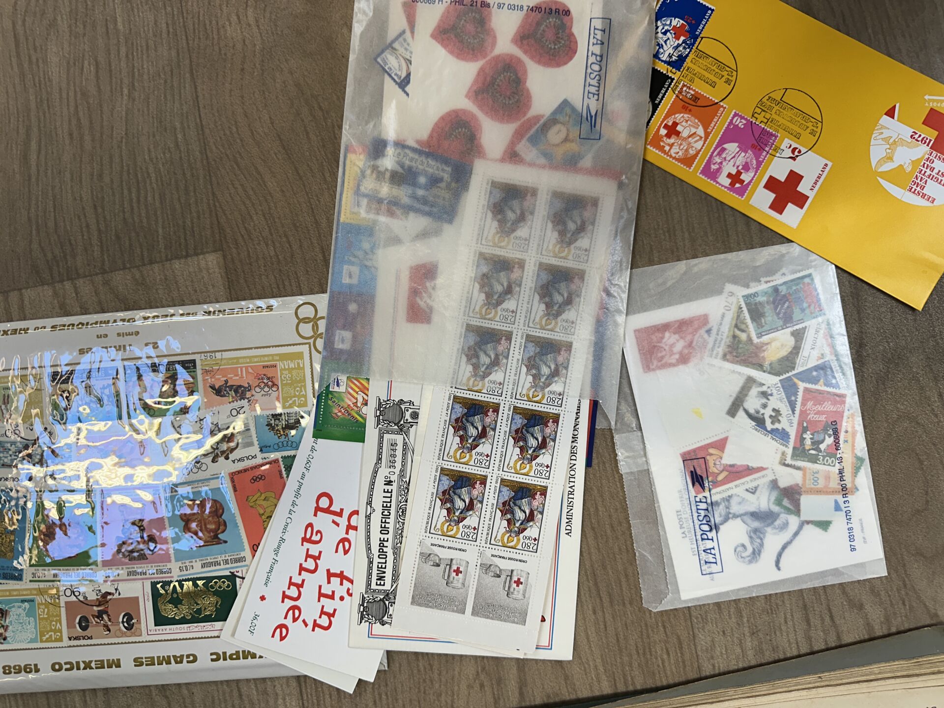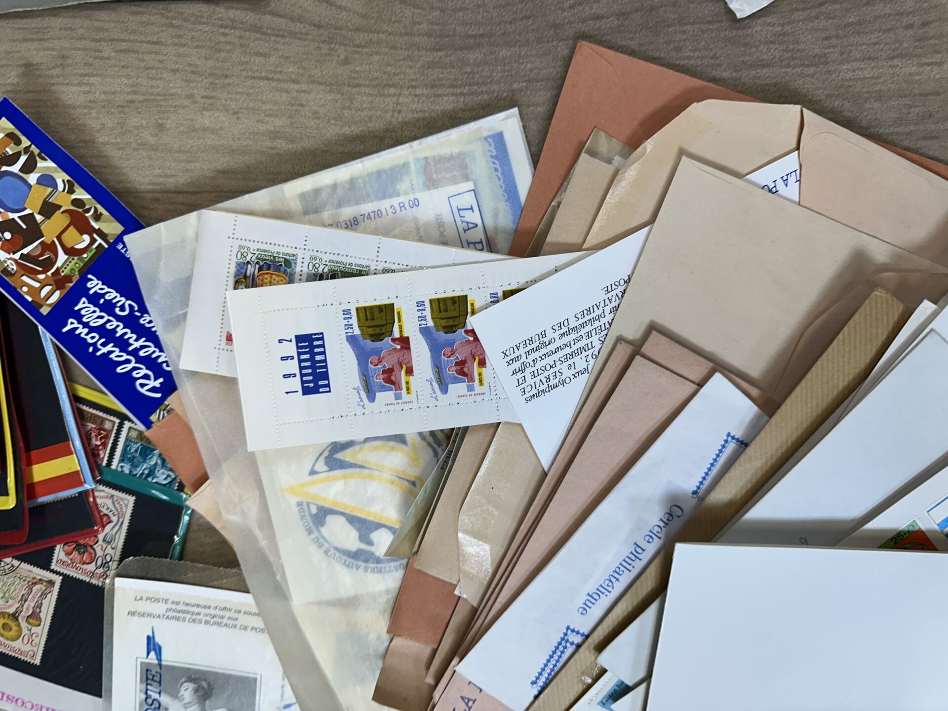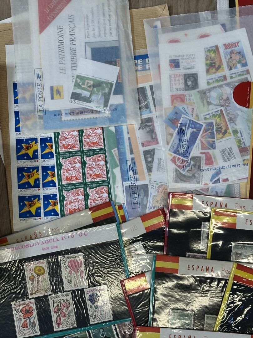 Fort ensemble de timbres dont albums France, Europe et Outre-Mer et nombreux timbres France valeur faciale.