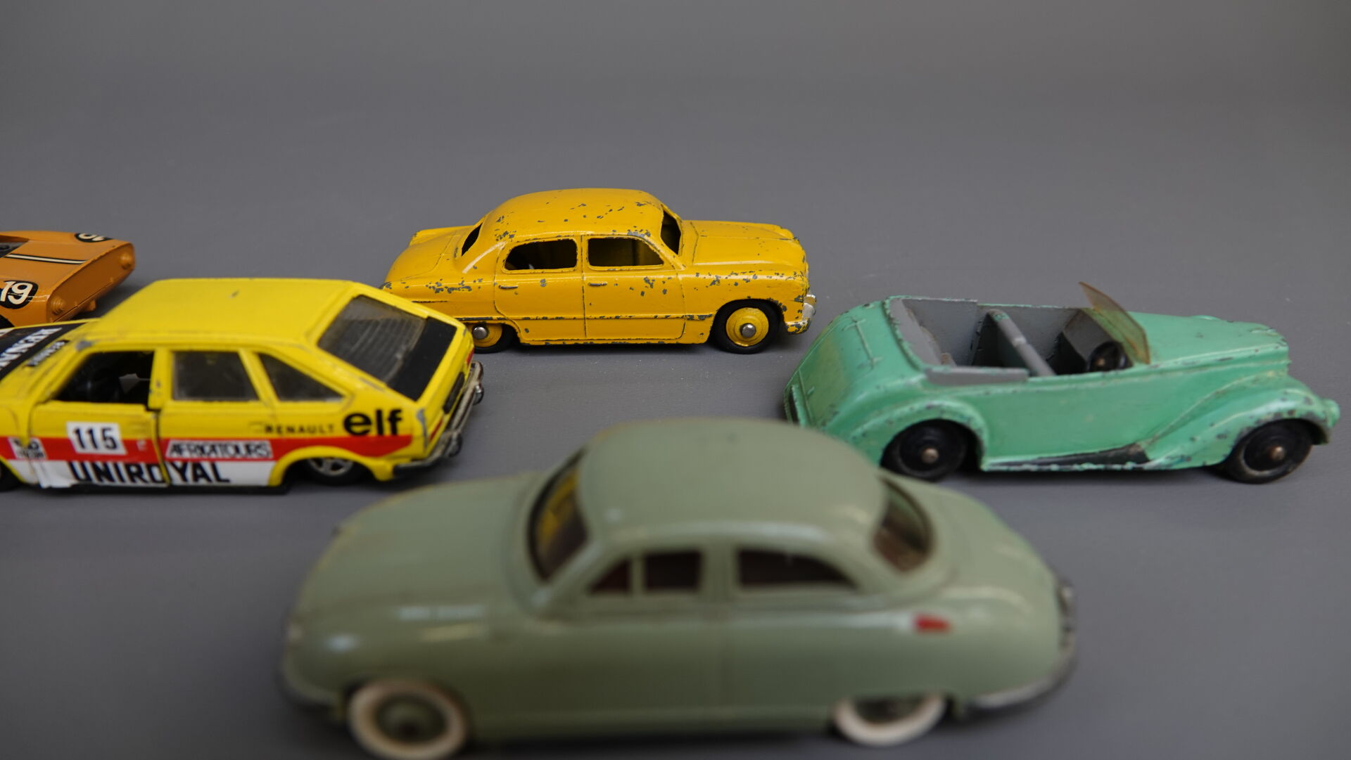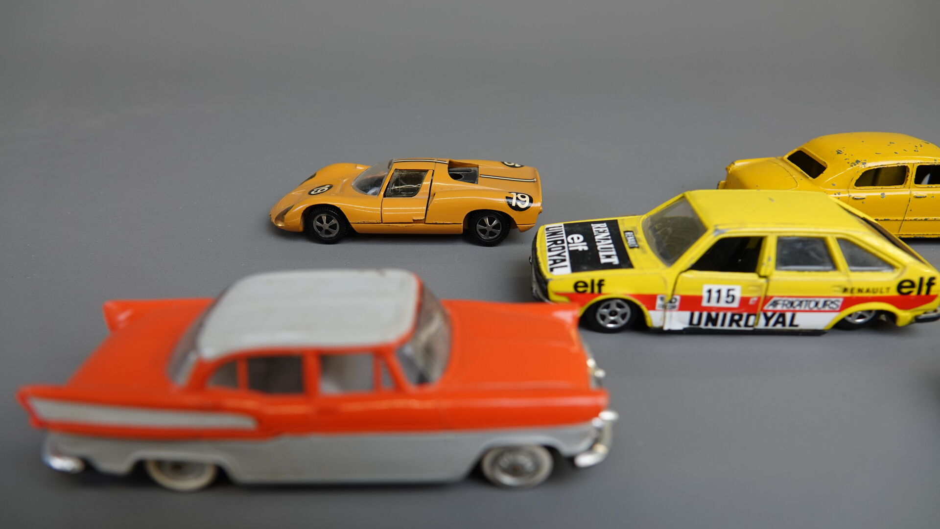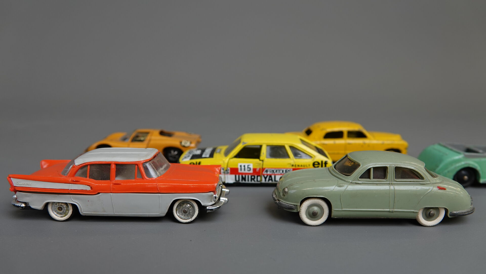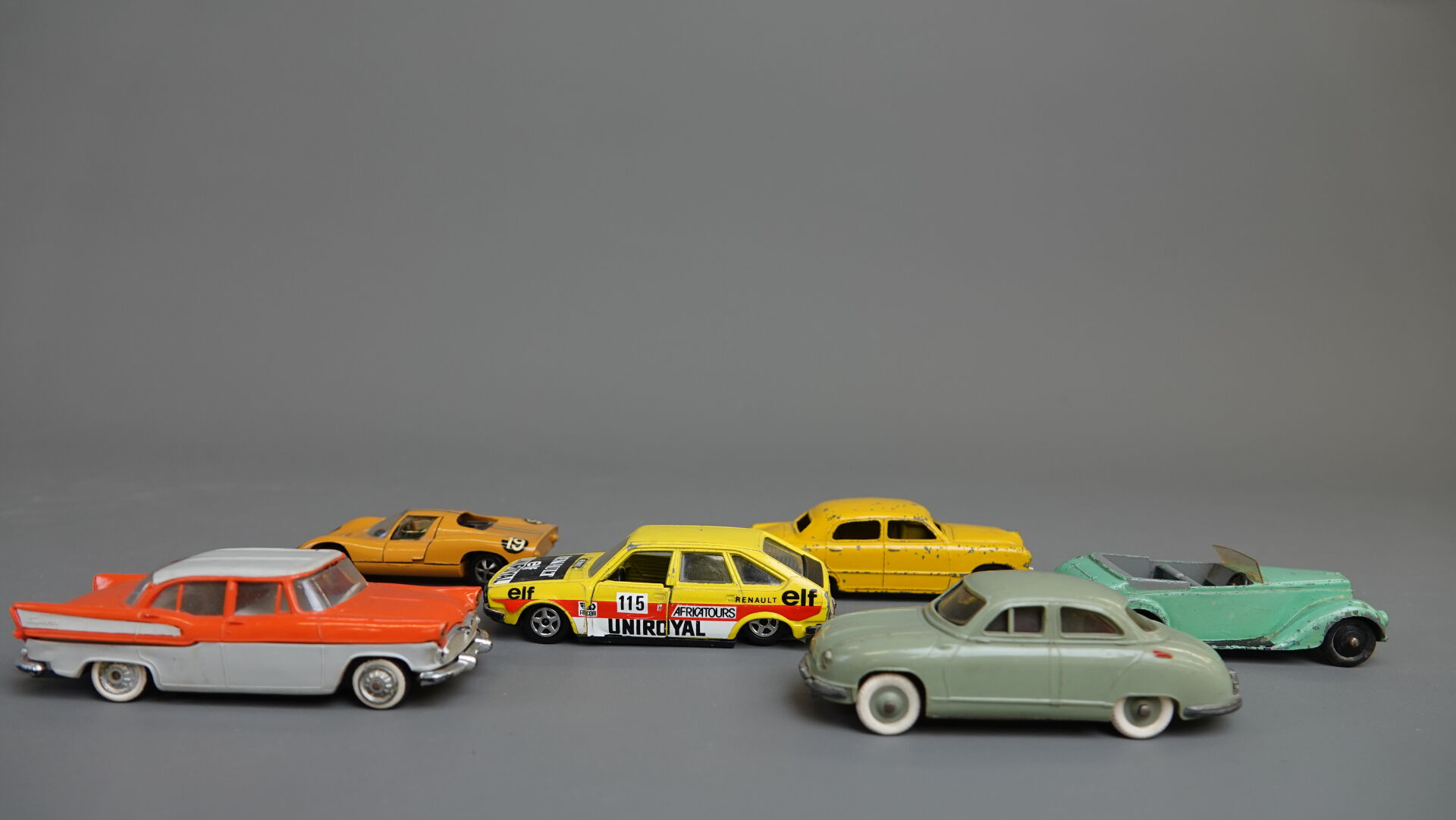 1/43ème, Marklin, Dinky!toys, JEP, Norev, lot de 6 véhicules dont Ford Sedan jaune, Armstrong Stodeley, Porsche 910 N°19Dyna 56 Panhard, Simca Chambord et une Renault 20 TL. Etat d'usage à passable. Expertise réalisée par Monsieur Stanislas LEMOINE.