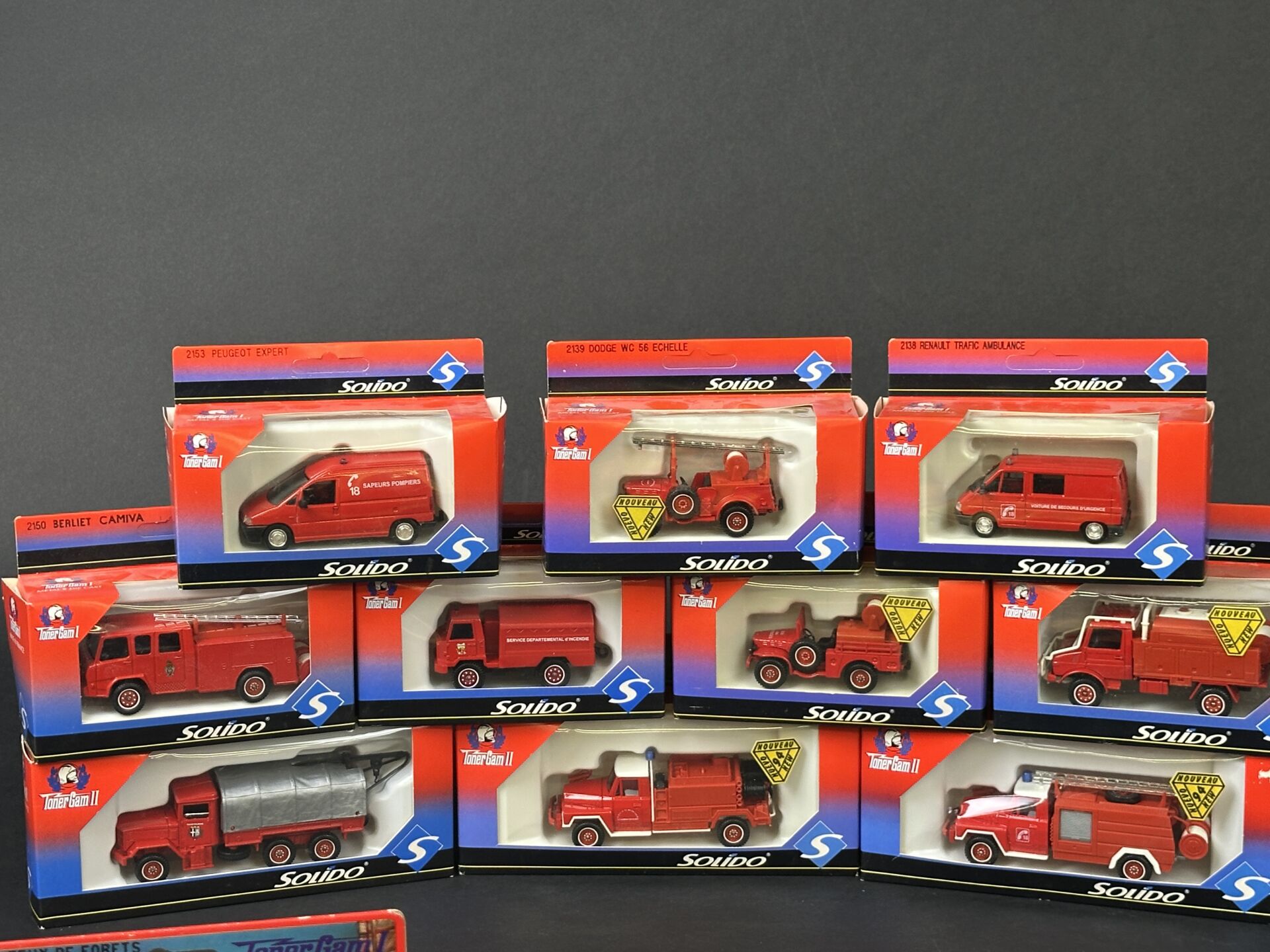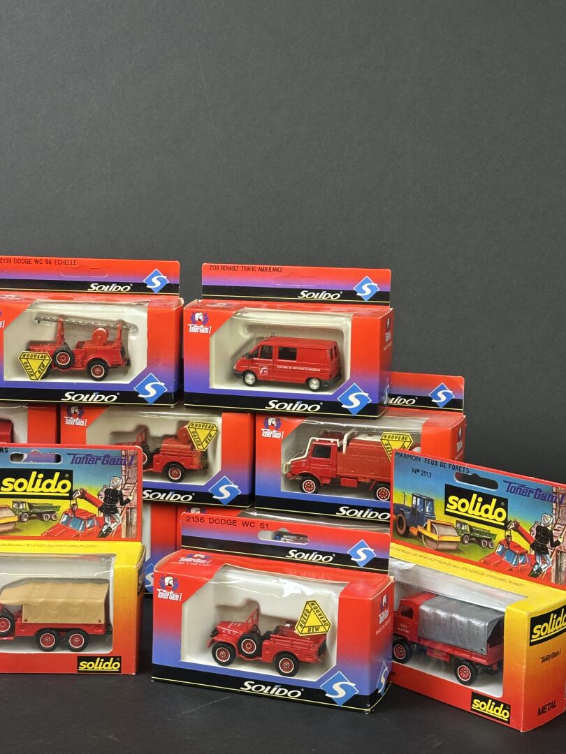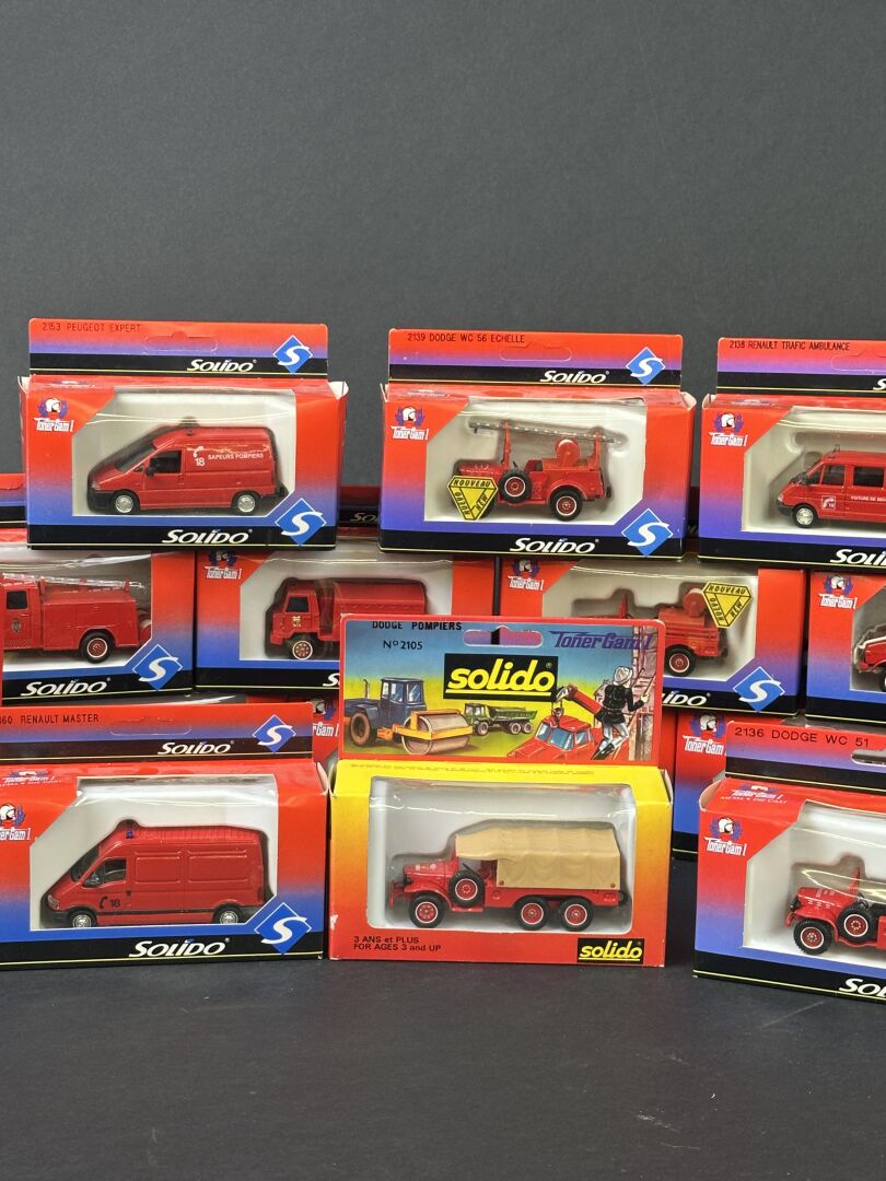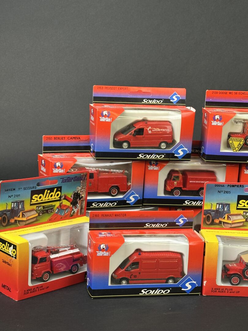 1/43ème, SOLIDO collection Toner GAM I et II, lot de 15 véhicules incendies, pompiers, pour tous type d'interventions Très bel état en boites d'origines. Expertise réalisée par Monsieur Stanislas LEMOINE.