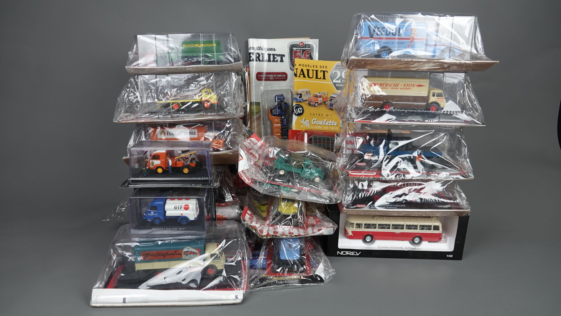 1/43ème- contemporains toutes marques, lot 28 véhicules tous types état neuf en boites d'origines avec ou sans blister. Expertise réalisée par Monsieur Stanislas LEMOINE.