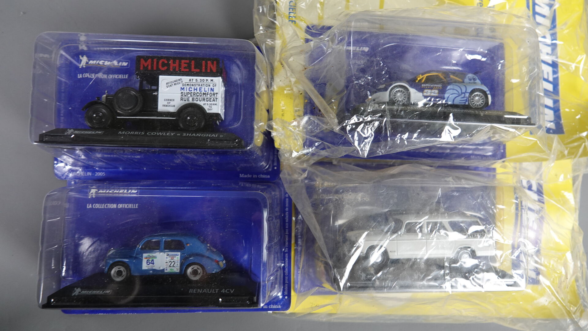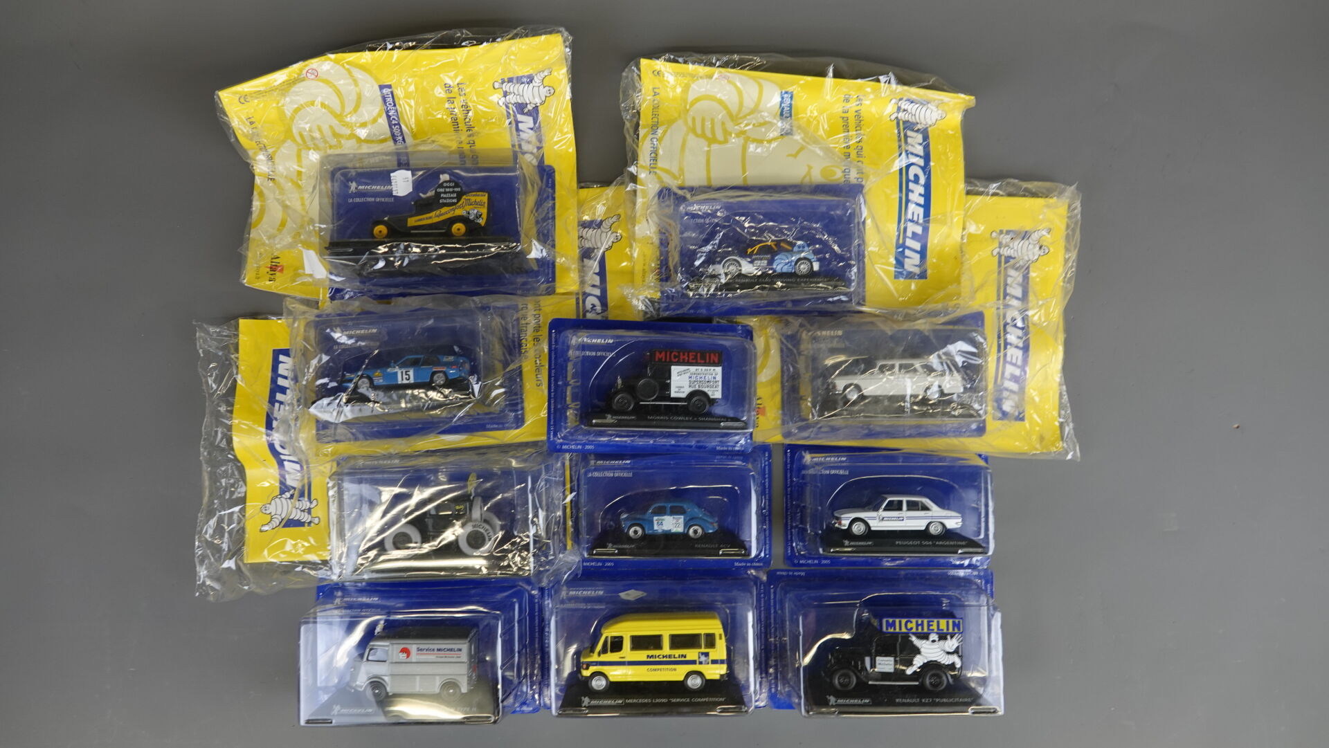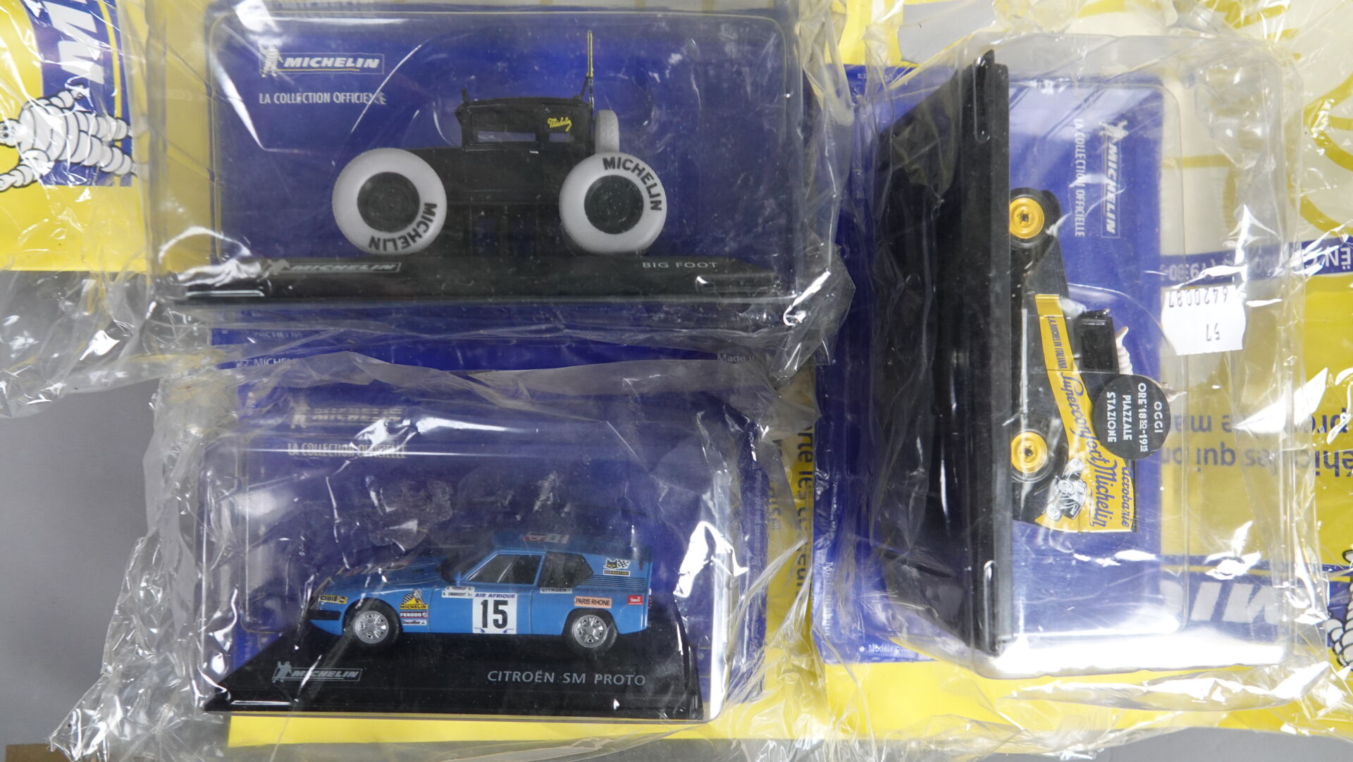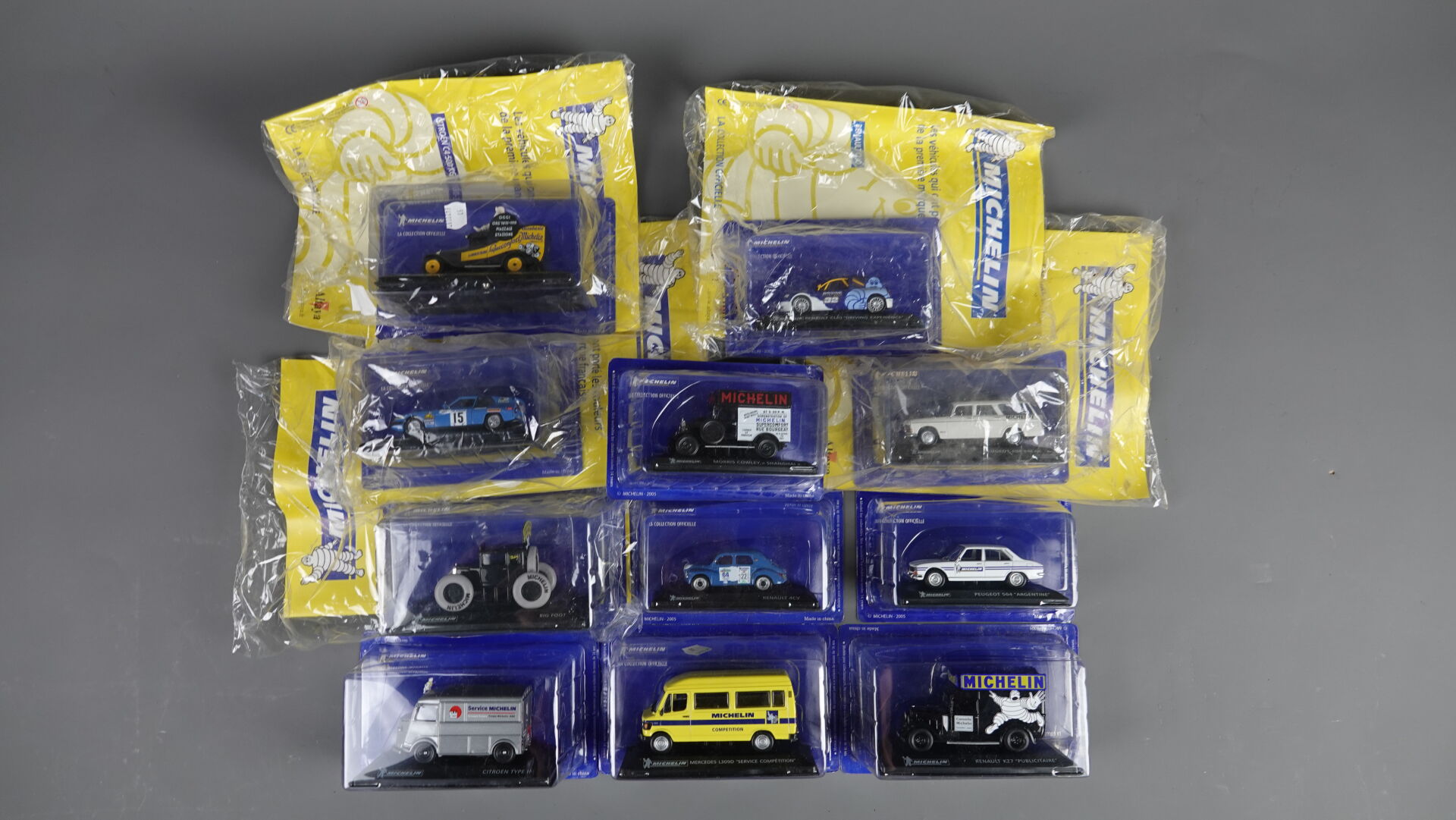 1/43ème- collection ALTAYA MICHELIN, lot 11 véhicules tous types état neuf en boites d'origines avec ou sans blister. Expertise réalisée par Monsieur Stanislas LEMOINE.