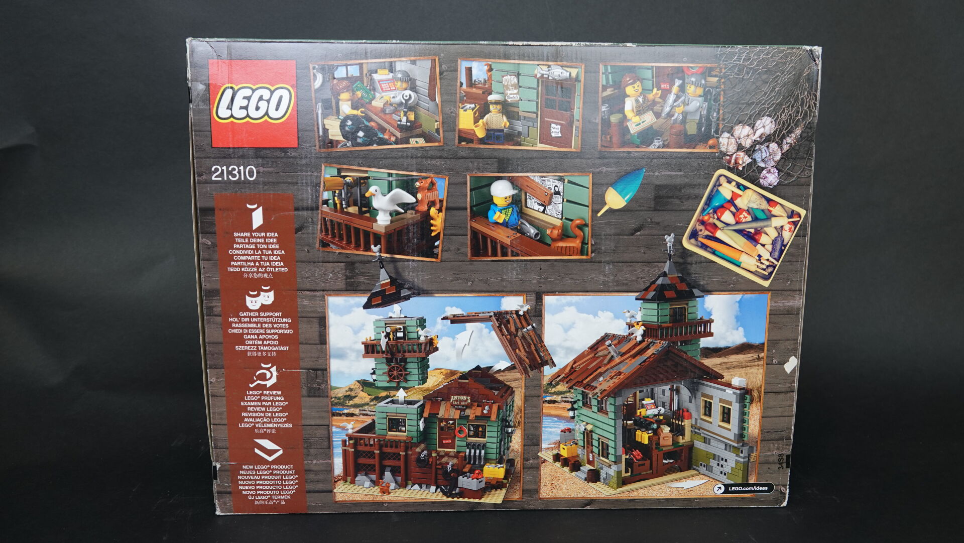 LEGO. Collection "Ideas'", boîte n° 21310 "Old fishing store" (non ouverte, légers enfoncements). Haut. : 37,5 cm - Larg. : 47,5 cm