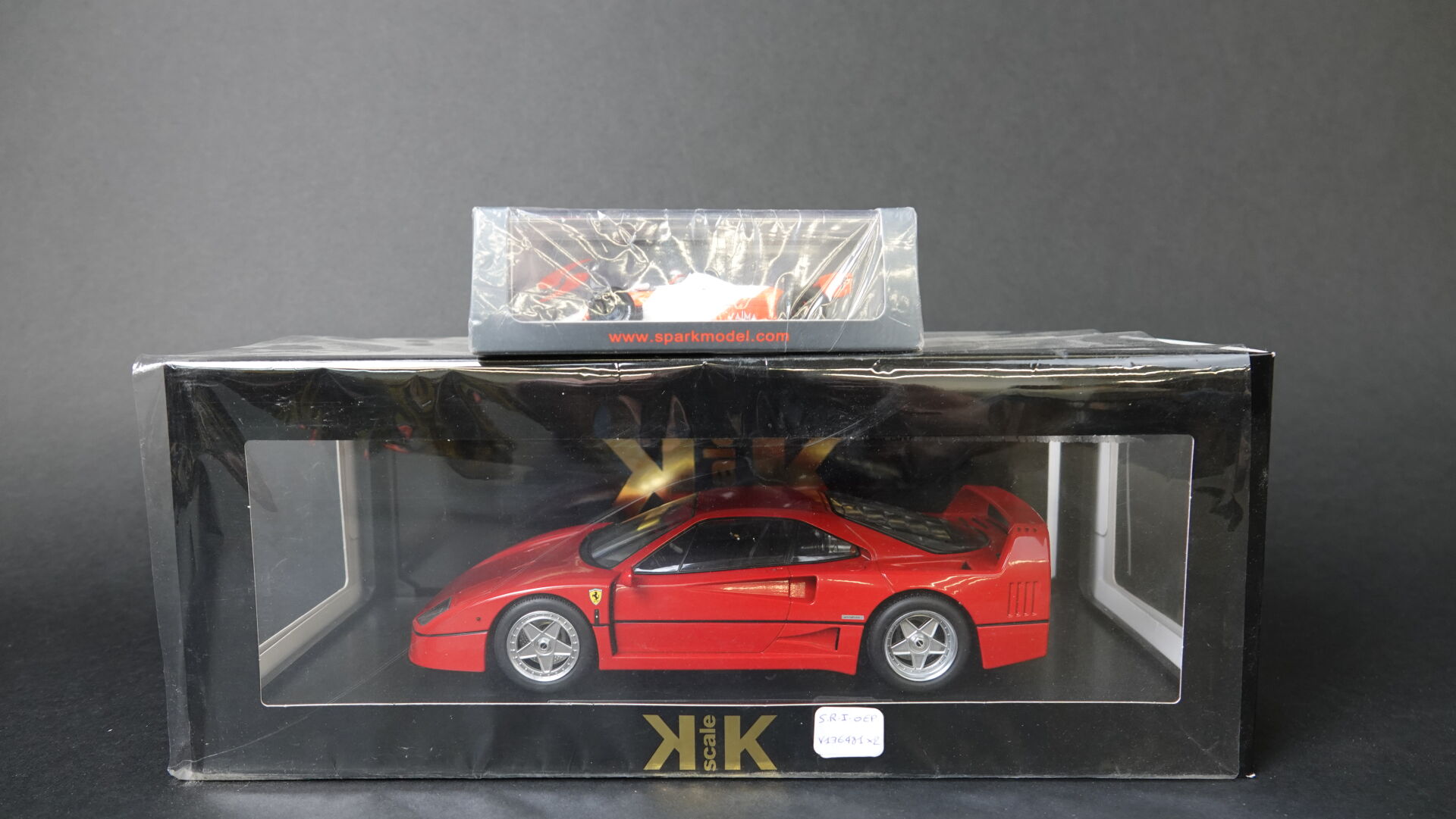 1/18ème, 1/43ème, KK et Minimax, lot de deux véhicules NB dont Ferrari F40 Réf 180691 et une Mac Laren MP4c 1983 Ref S4841.