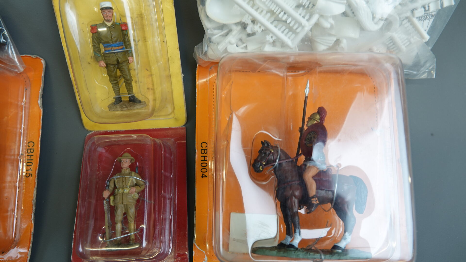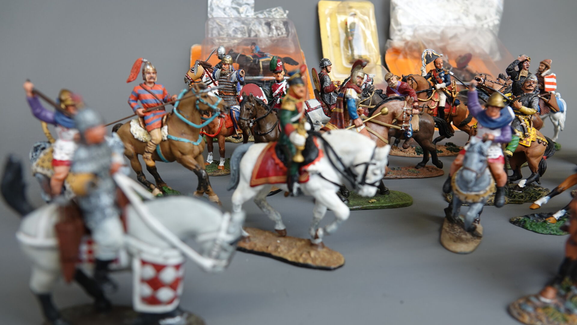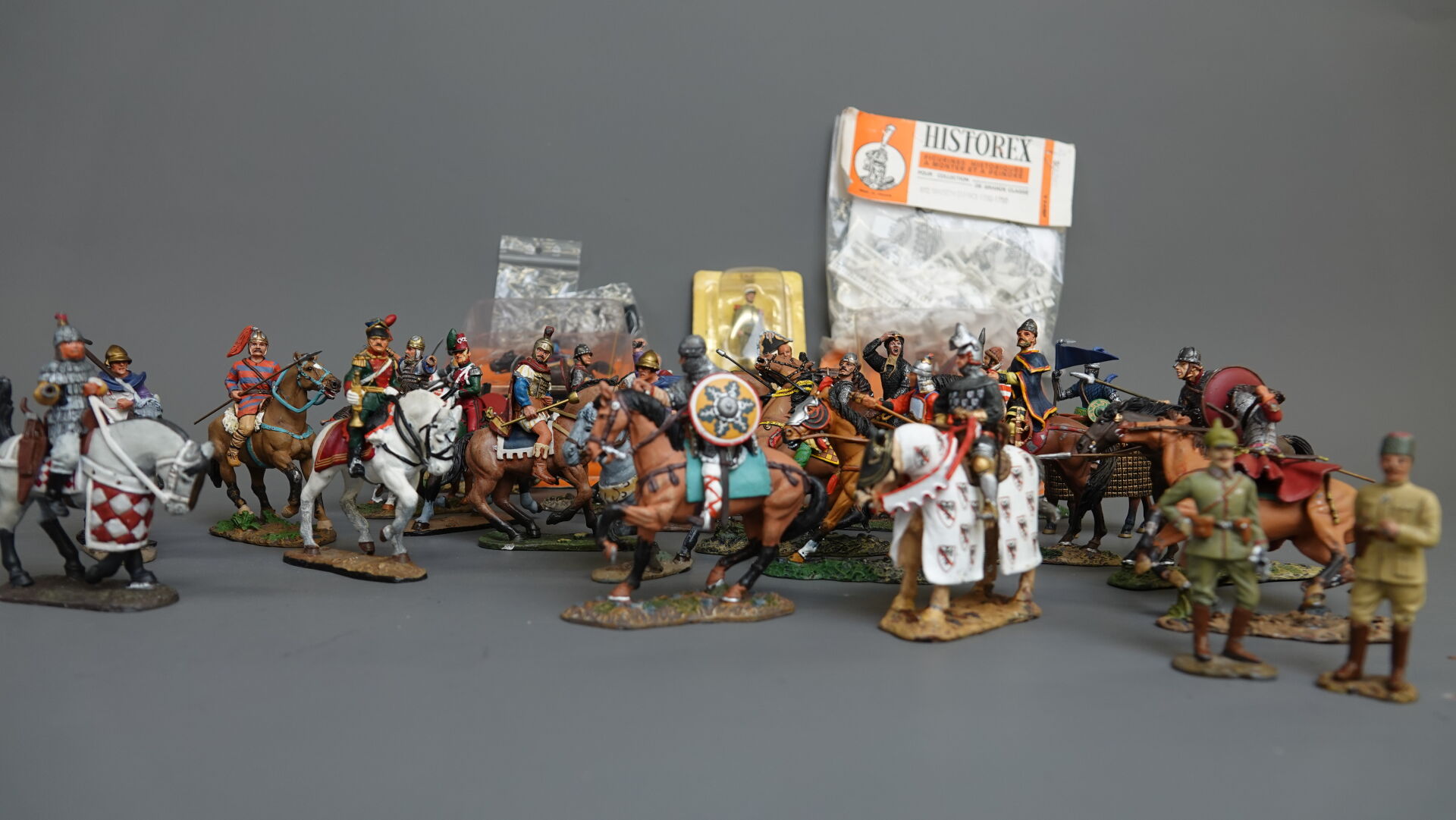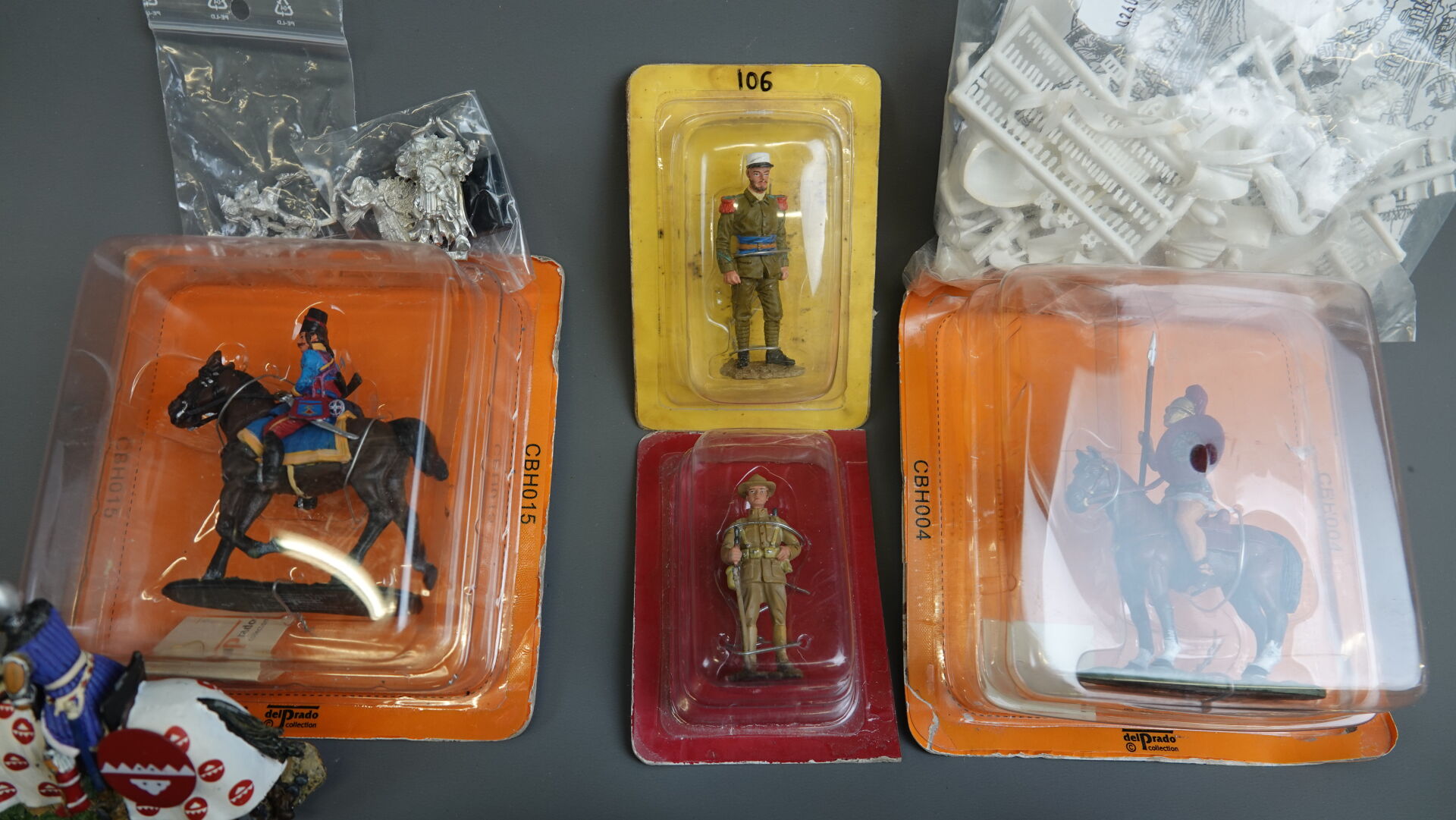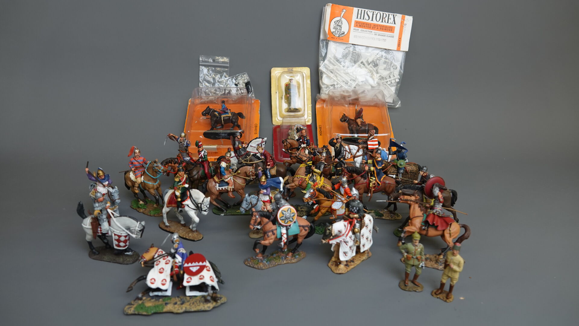 DEL PRADO lot d'environ 25 soldats principalement cavaliers représentant les armées mongols, gauloises, premier Empire et divers dont quatre sous blister (manques et accidents). On joint : HISTOREX la maison du Roi à monter en sachet fermé. Expertise réalisée par Monsieur Stanislas LEMOINE.
