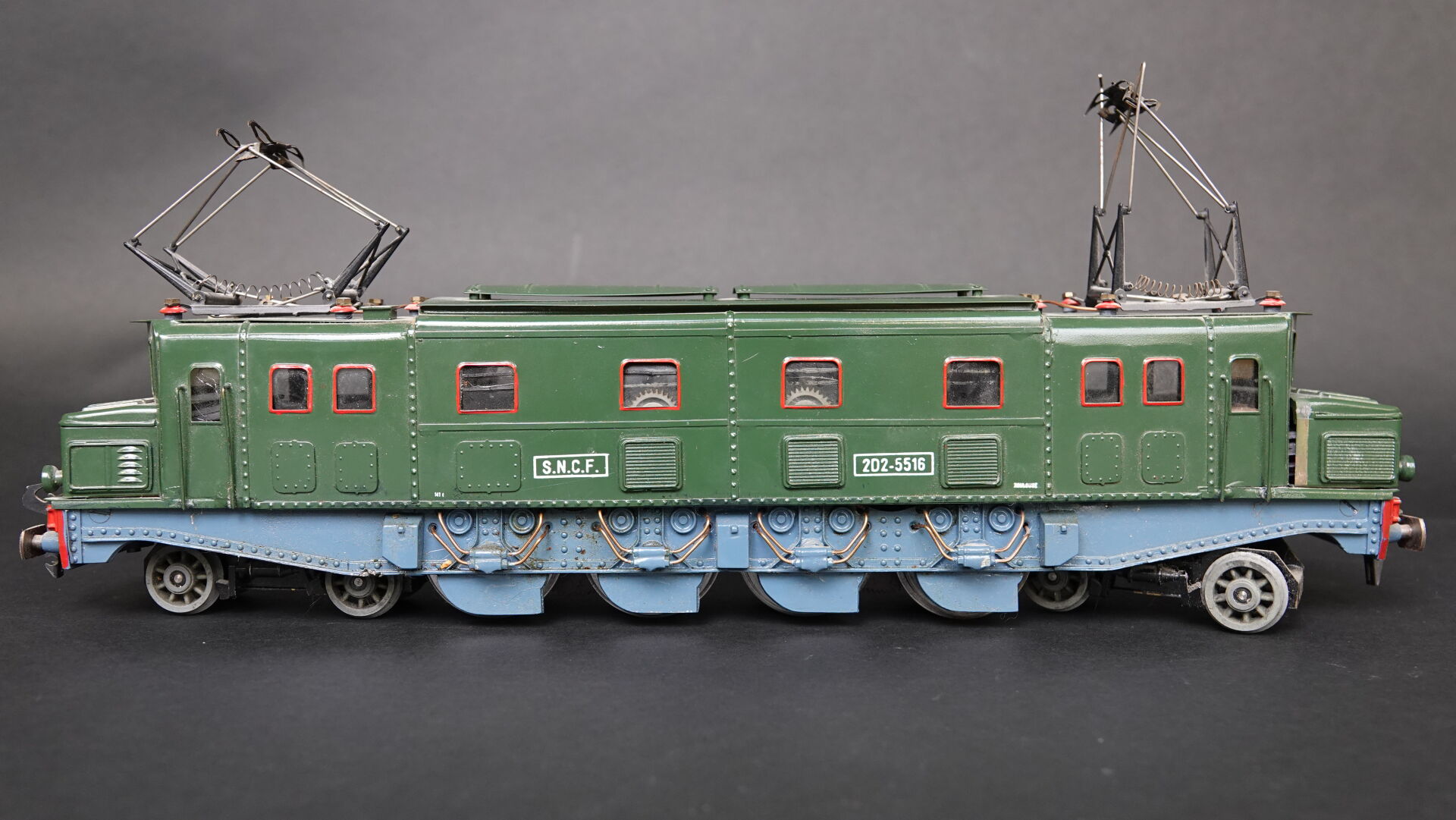 Ecartement O - ACO (Atelier du château d'O) Locomotive électrique 2D2 - 5516 en livrée verte pour la SNCF en fonte, tôle et laiton. Bel état d'origine. Expertise réalisée par Monsieur Stanislas LEMOINE.