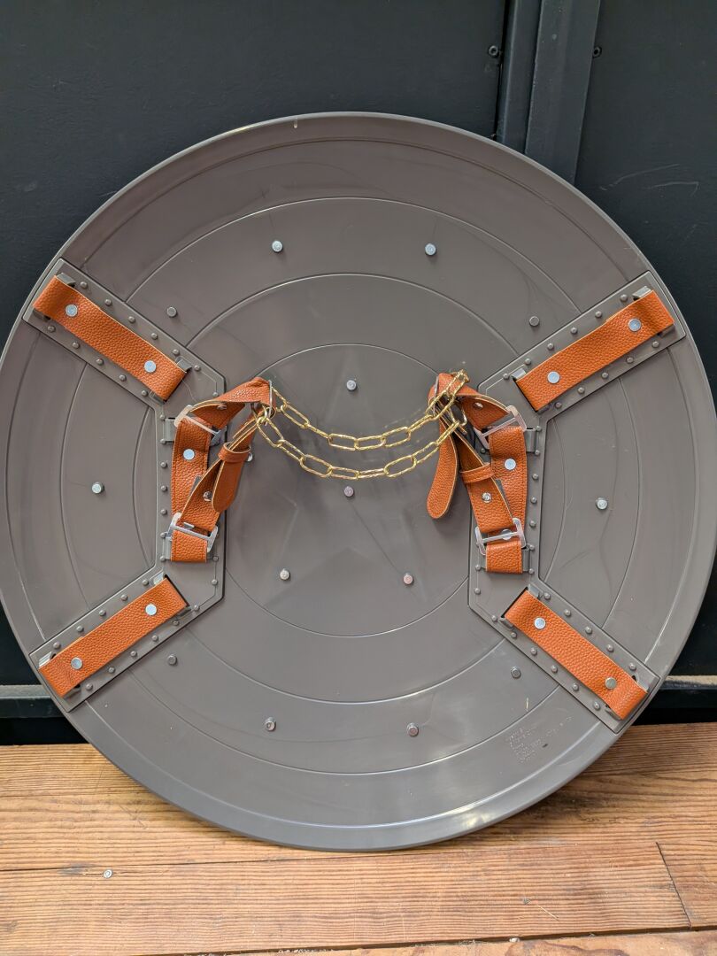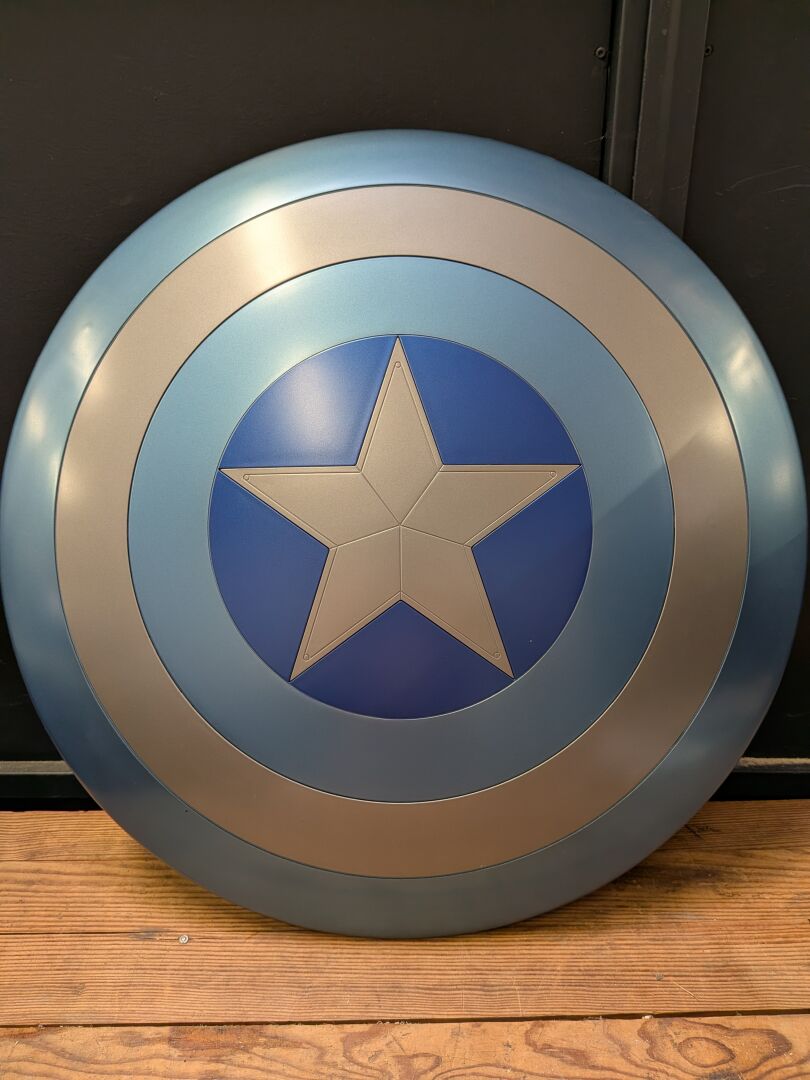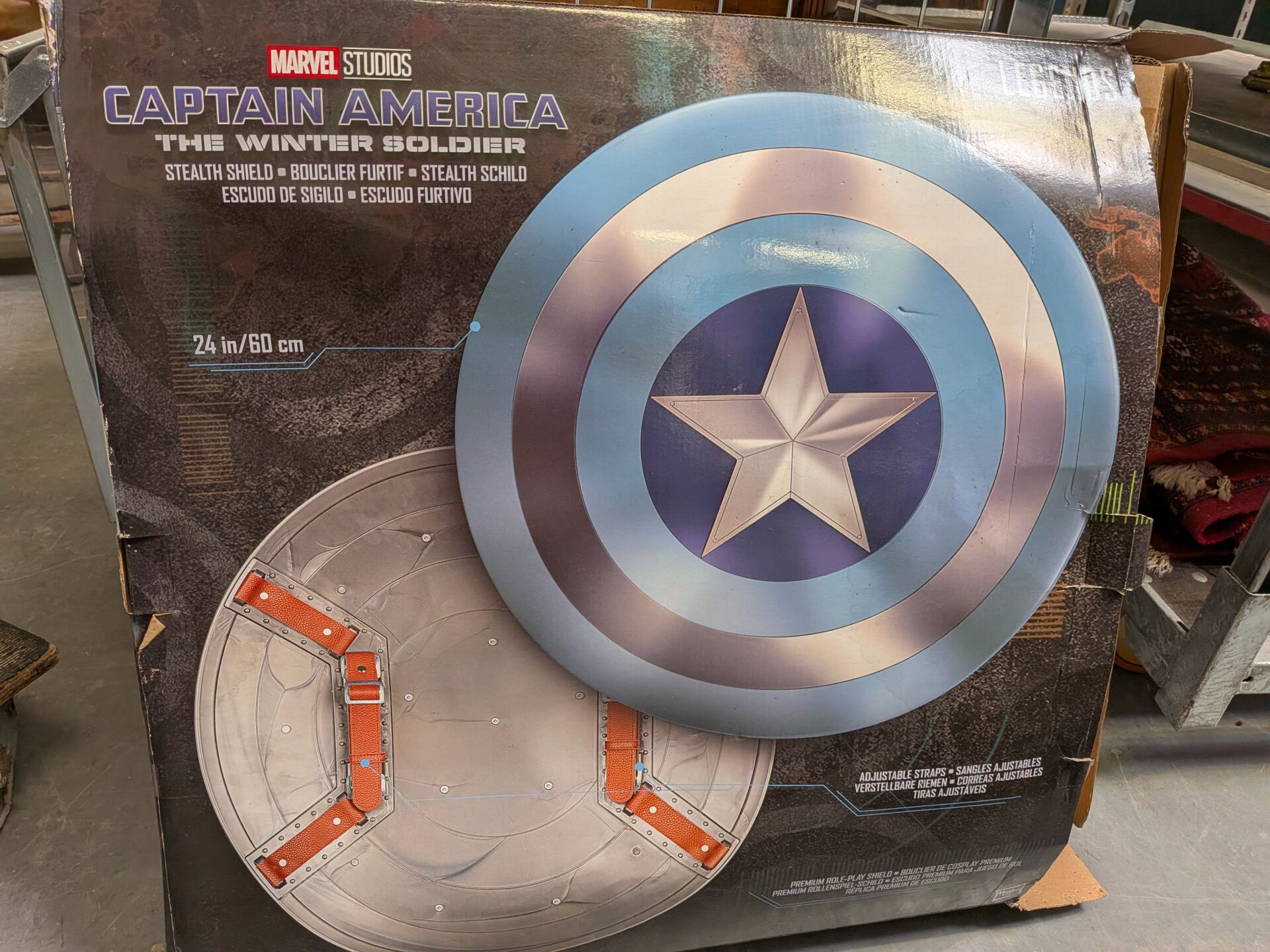 Réplique du Bouclier Captain America Stealth Shield 1/1 - MARVEL LEGENDS - The Winter Soldier HASBRO ( dans son cartonnage en mauvais état ) Diam. : 60 cm.