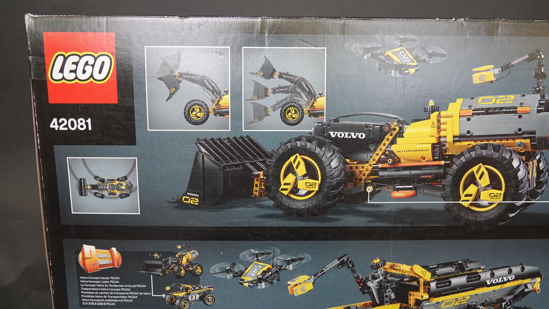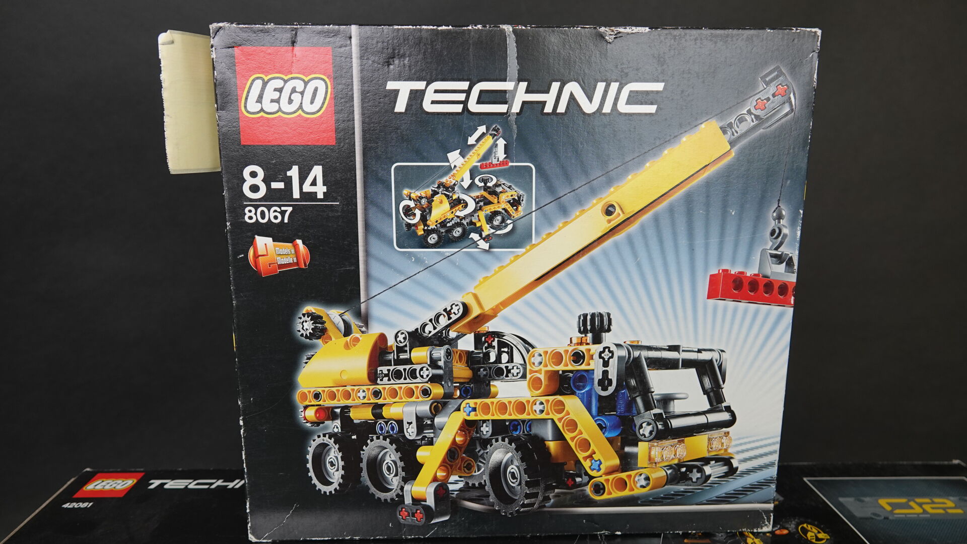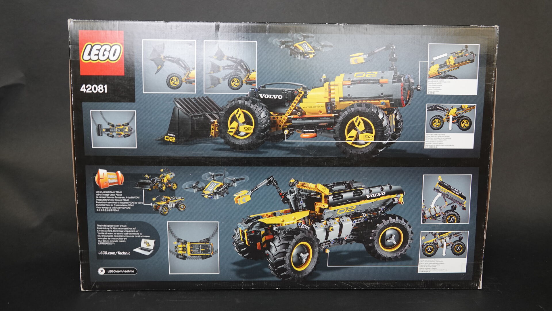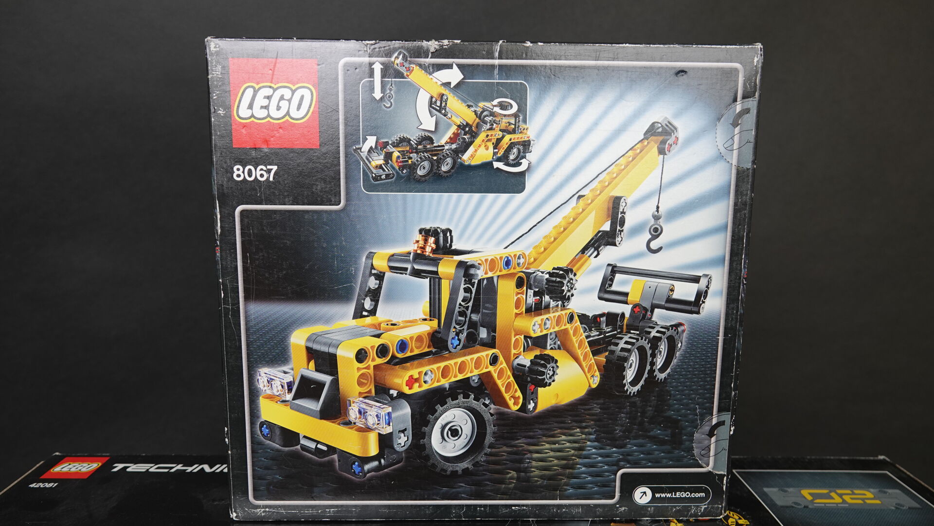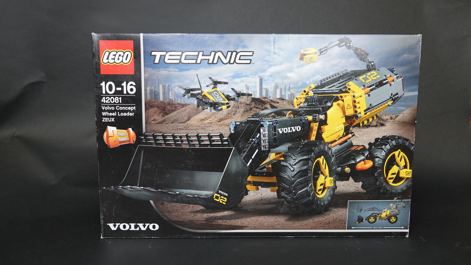 LEGO. Collection "Technic", réunion de deux boîtes (non ouverte, légers enfoncements et usures), comprenant : - boîte n° 42081 "Volvo concept wheel loader ZEUX" Haut. : 37,5 cm - Larg. : 58 cm - boîte n° 8067 "Mini mobile crane" Haut. : 26 cm - Larg. : 28 cm