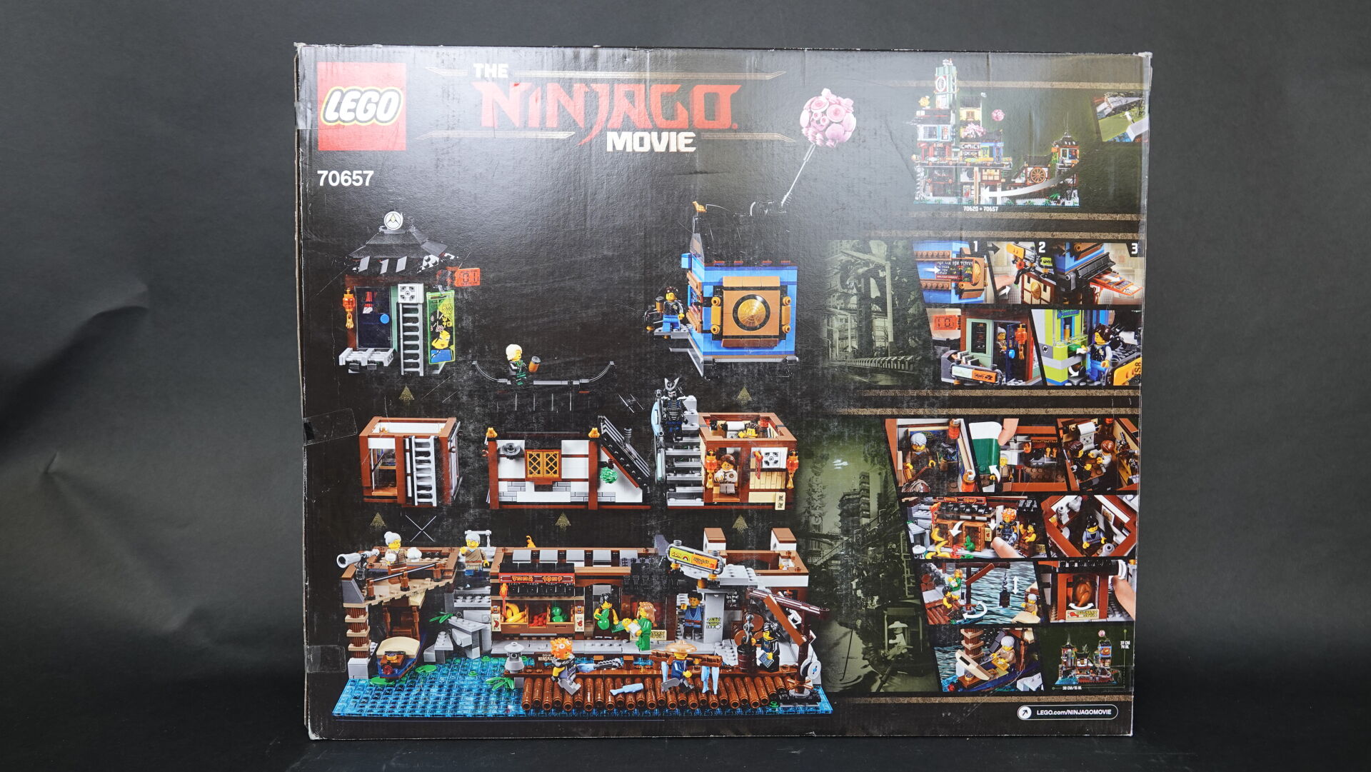 LEGO. Collection "The Ninjago movie", boîte n° 70657 "City docks" (non ouverte, légers enfoncements). Haut. : 47,5 cm - Larg. : 58 cm