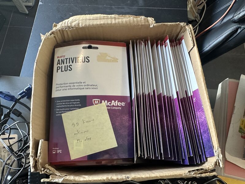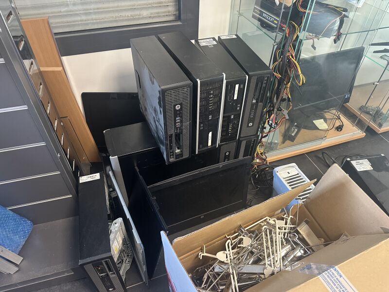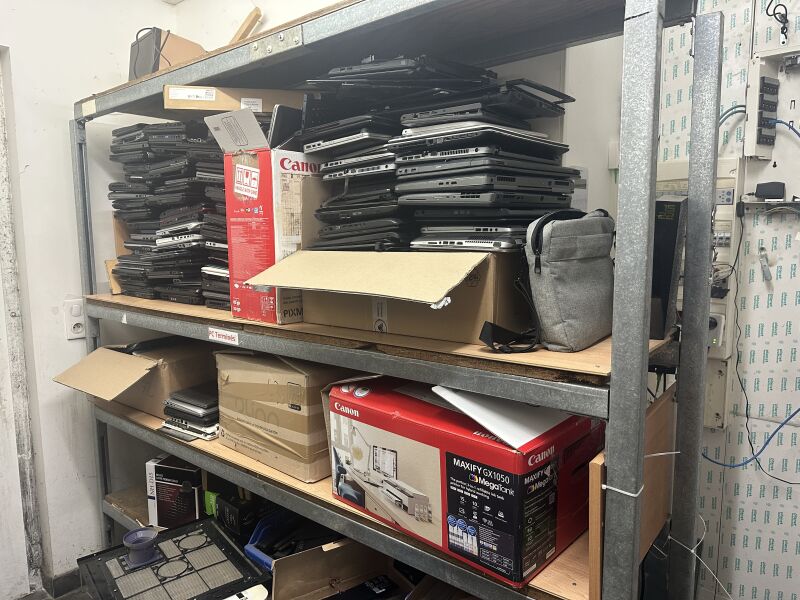 1 stock de consommables et pièces informatiques dont essentiellement récupération, en l'état dont : - 5 cartes mères (Asus - H&1M-P Plus G3250; MSI-B650 Gaming Plus wifi Gygabyte Aorus B550 Elite V2 Ryzen 7 2700 X; AS Rock B150M - HDV; FUJITSU 1150) - 1 unité centrale DELL Optiplex 990 Core i7 - 2600 6 Go (sans DD) - 1 unité centrale DELL Optiplex 3020 Core i5 8 Go (sans DD) - 1 unité centrale DELL Optiplex 7050 Core i5 SSD 240 windows 11 Pro - 1 ordinateur tout-en-un MSI MS AA7511 - 1 ordinateur tout-en-un HP - 1 ordinateur tout-en-un ASUS - 11 unités centrales incomplètes - 14 écrans divers dont 6 en applique - 99 licences antivirus MCAFEE new et divers dont disques durs, chargeurs - 1 armoire informatique - 5 routeurs wifi, prises onduleur, alimentations, routeurs et switchs - 1 lot de plus de 120 ordinateurs portables obsolètes ou pour pièces DD 2"1/2 et 3"1/2