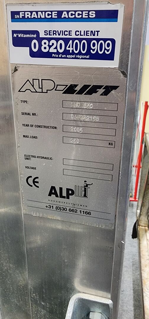 1 monte matériaux ALP Lift 250 KG type IMO 330 n°04-042198, de 2005