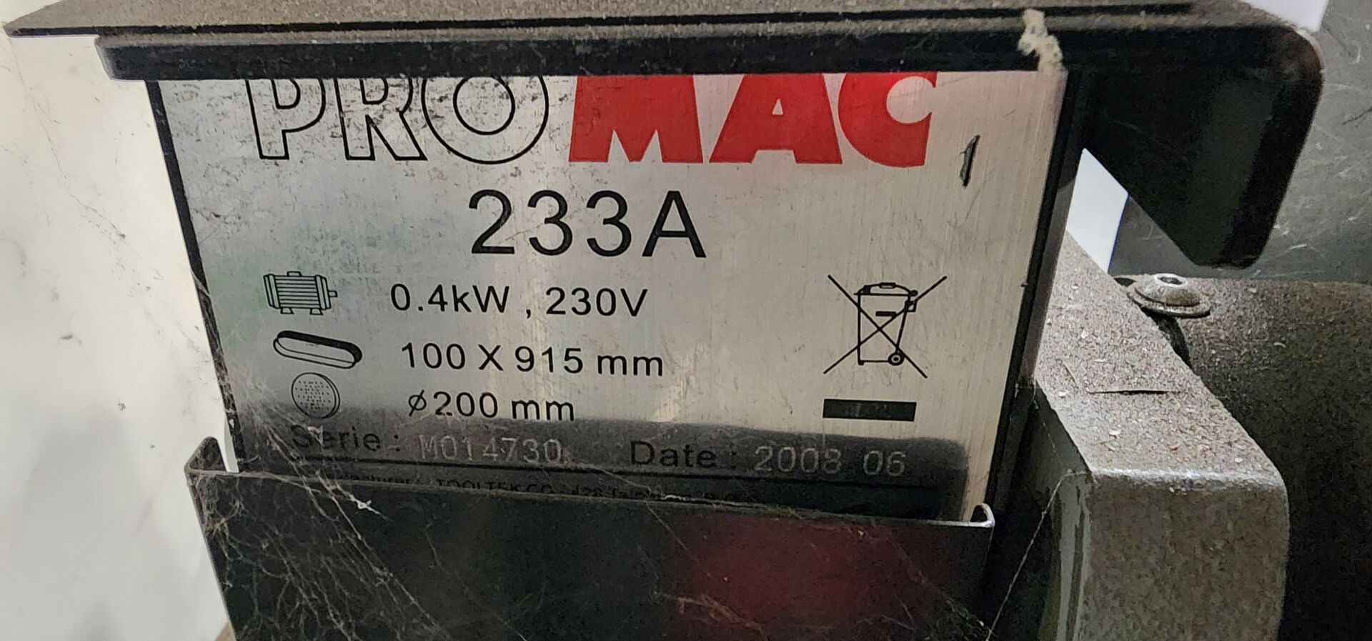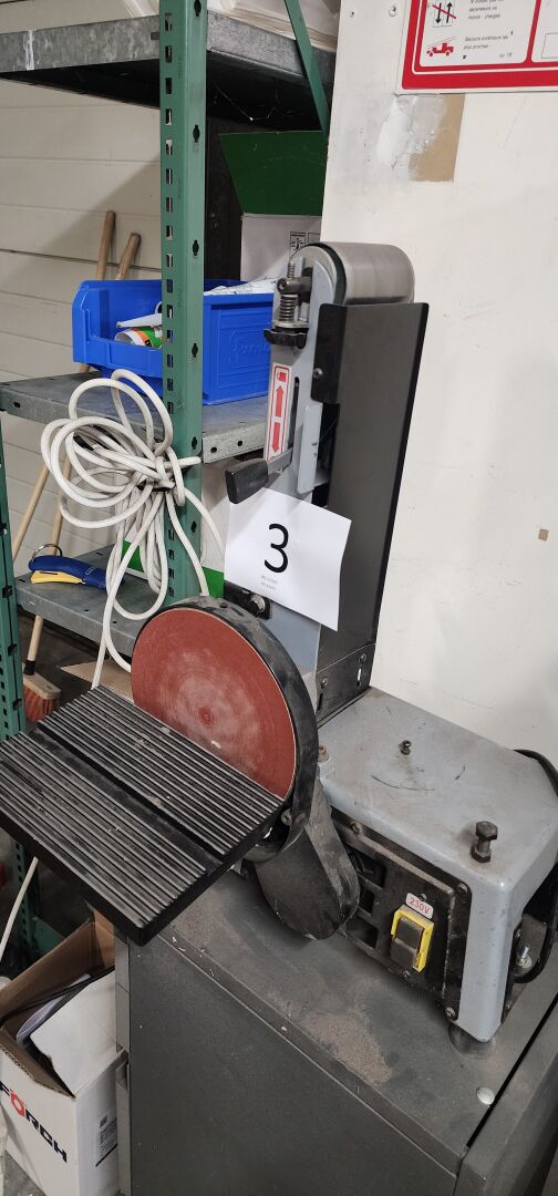 1 tank à meuler PROMAC 233A diam 200 mm , de 2008, sur caisson mobile métal 3 tiroirs + petit stock de disques à poncer