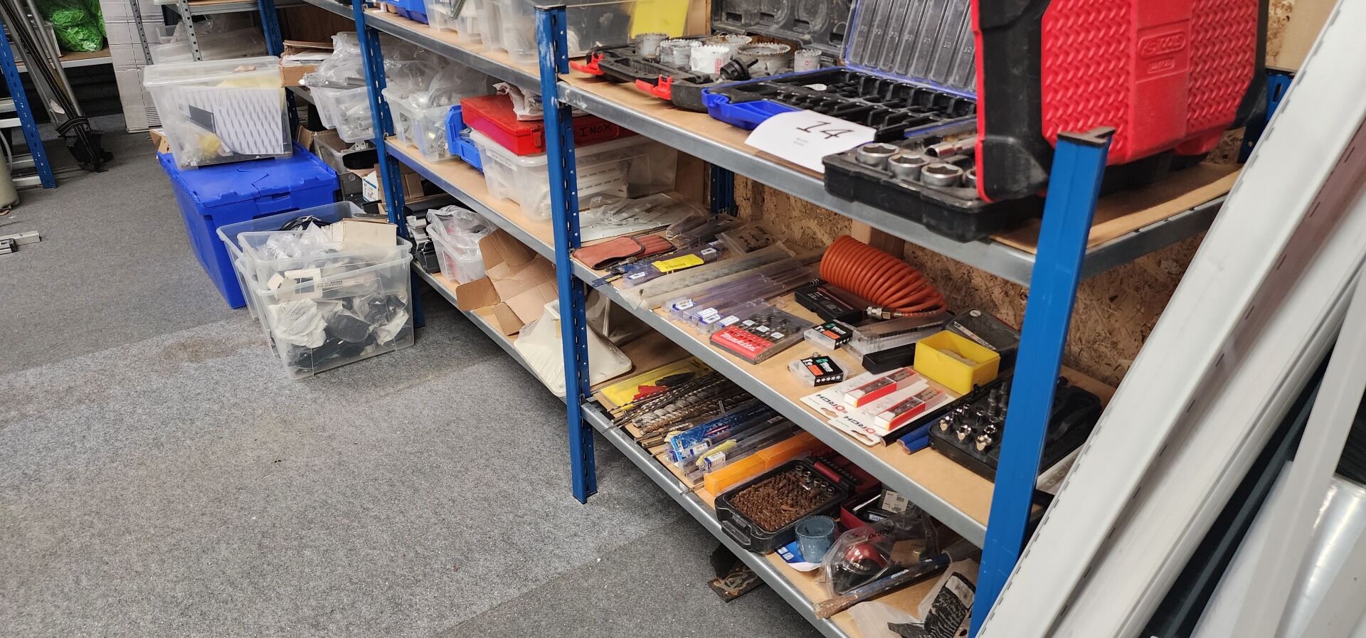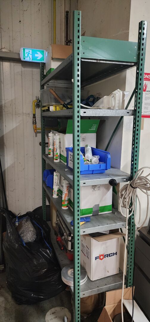 1 étagère cornière galva 10 niveaux 112 x 40 x 197 cm 1 étagère 2 modules 4 niveaux 254 x 60 x 200 cm 1 étagère métal bleu et blanc 4 niveaux 130 x 60 x 200 cm 1 étagère cornière 4 niveaux 130 x 60 x 200 cm 1 étagère mi-hauteur métal bleu 3 modules 3 niveaux 1 étagère mi-hauteur métal bleu 2 modules 3 niveaux 1 étagère mi-hauteur métal bleu 3 niveaux 1 étagère cornière métal vert 5 niveaux 107 x 40 x 200 cm LE TOUT VENDU SANS LE CONTENU