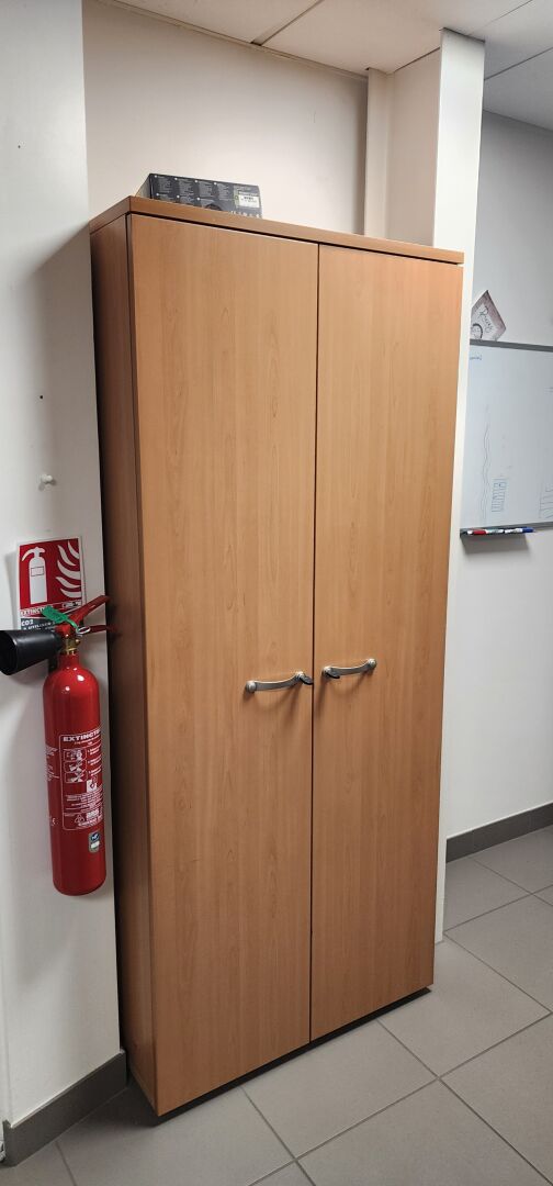 1 table mélaminé façon bois piètement métal gris 180 x 80 cm 1 armoire métal gris à rideaux coulissants façon bois 120 x 42 x 198 cm 2 étagères mélaminé gris 80 x 28 x 202 cm 2 meubles mélaminé façon bois 8 cases ou 4 cases 1 armoire mélaminé façon bois 2 portes 80 x 48 x 186 cm 3 chaises visiteurs tissu noir (x2) ou simili cuir noir (x1) 1 table basse mélaminé façon bois 1 meuble bas mélaminé façon bois