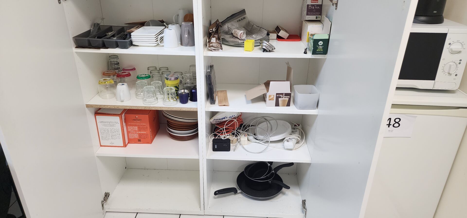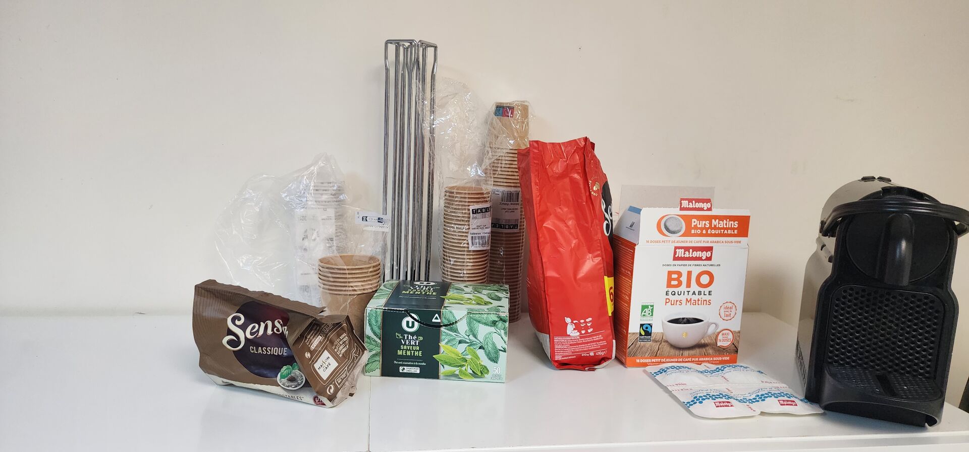 1 machine à café NESPRESSO 1 machine à café PHILIPS Senseo 1 bouilloire électrique SIPLEC 1 micro ondes SAMSUNG 1 réfrigérateur table top FAGOR 1 lot de vaisselle dont verres, assiettes, poêle, casserole, etc