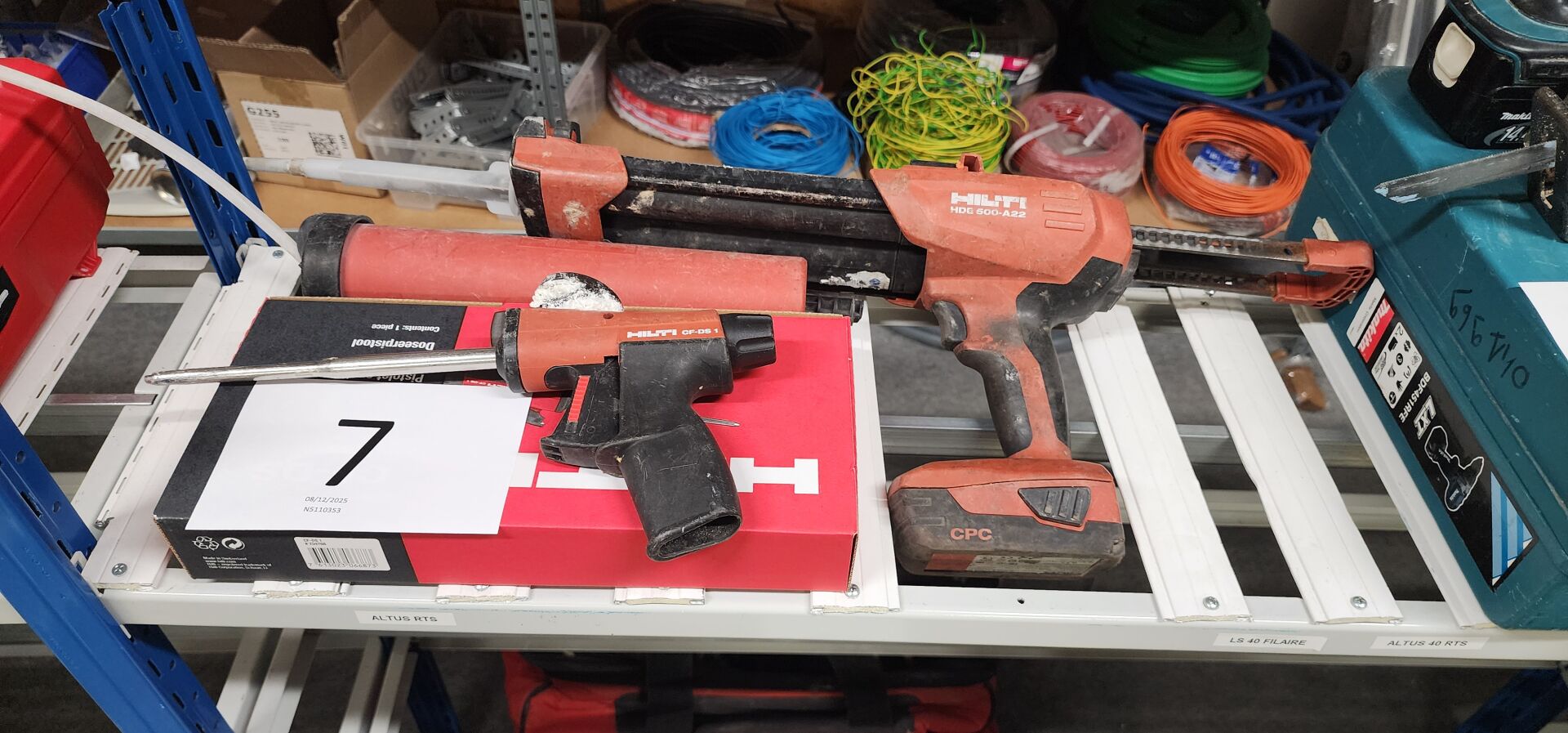 1 pistolet de scellement autonome à cartouche HILTI HDE 500-A22, 1 batterie 1 grand sac à outils HILTI 1 pistolet applicateur HILTI CF-DS1