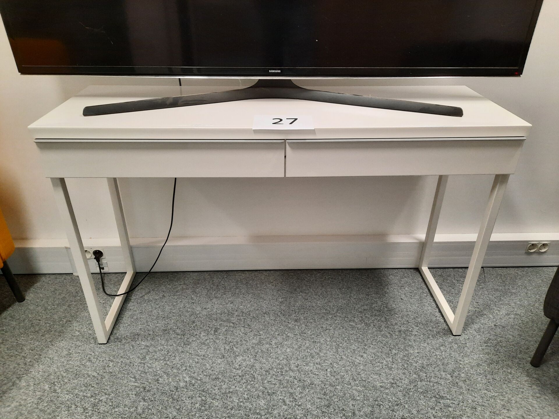 Console en métal et mélaminé blanc à 2 tiroirs en ceinture IKEA modèle BESTA BURS (120x40)
