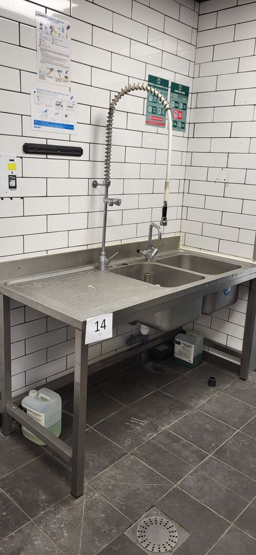 1 plonge inox à dosseret 2 bacs, égouttoir à gauche, avec douchette, 160x70cm A charge de démonter proprement en respectant l'étanchéité, prévoir pose de bouchons de plombier