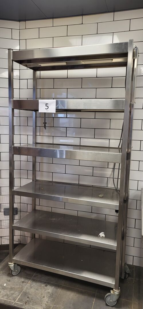 1 étagère mobile inox à 6 niveaux dont 3 chauffantes, 100x45cm x 202 cm